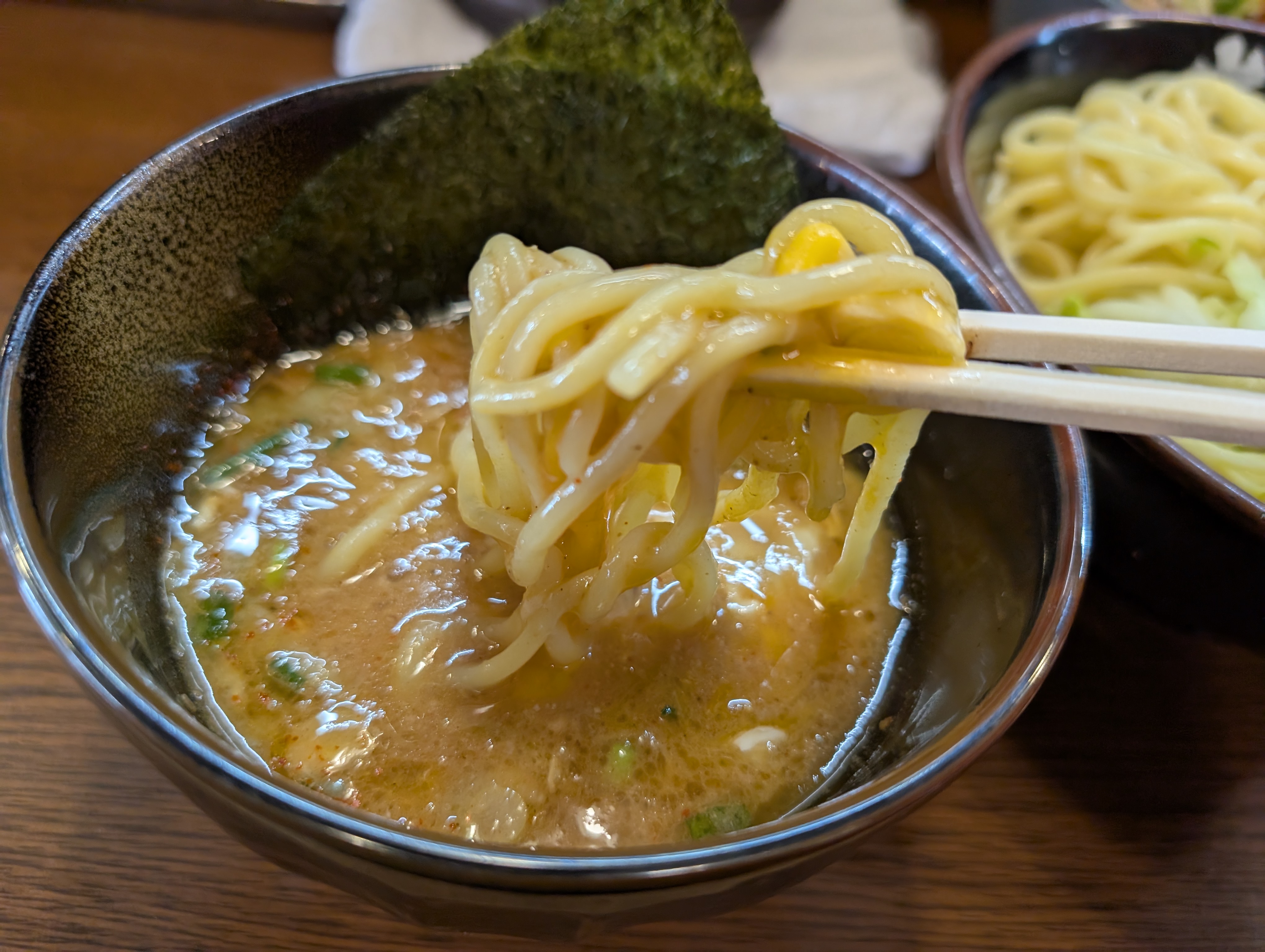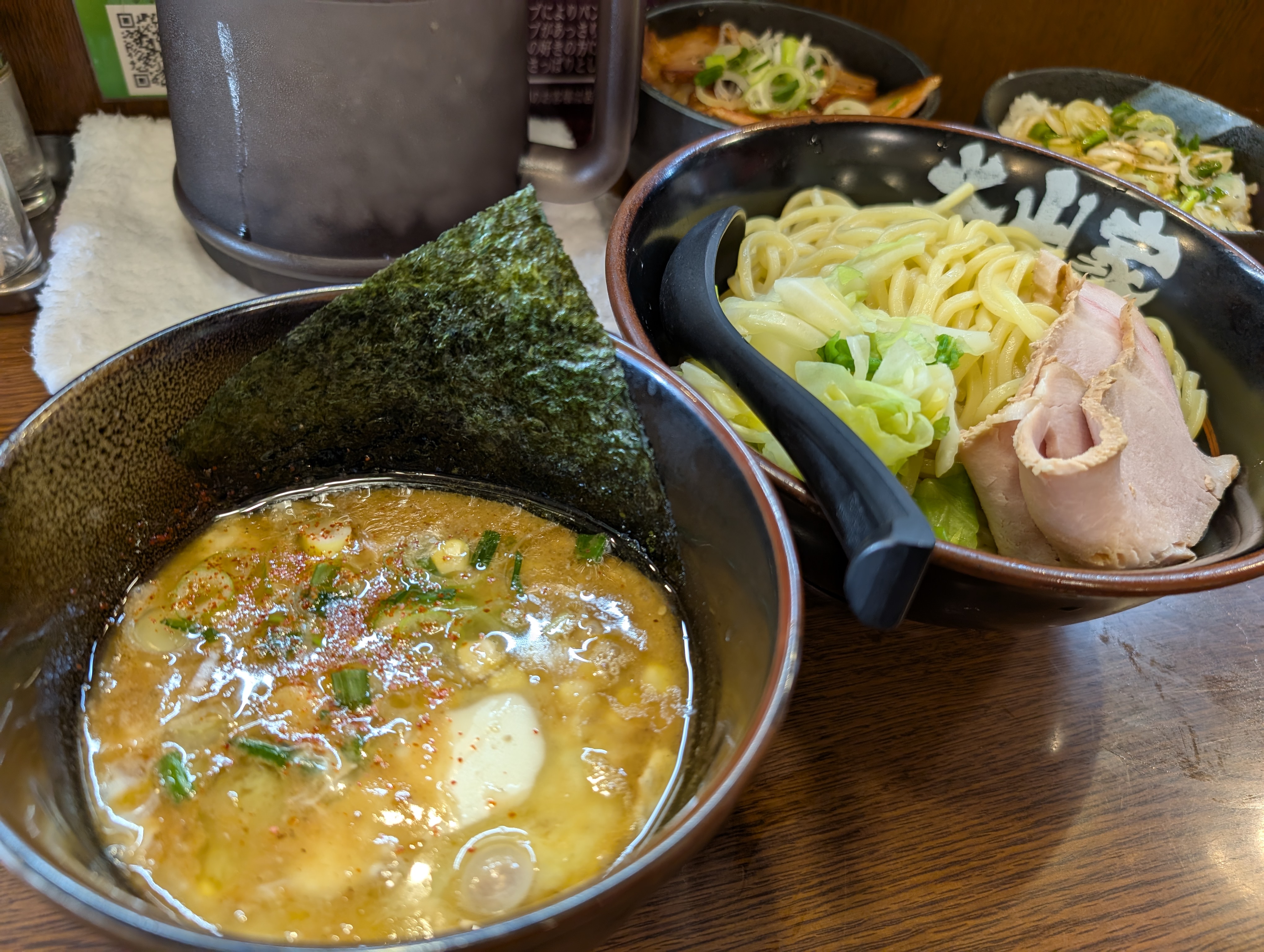 公式ポストにもあったように、スープ割りは 必須OF必須! あつあつ豚骨スープで再加熱されたつけ汁から、再びもわぁ~っと味噌バター感がアピってきてメチャうま! 麺を残しといてラーメン的にしてもきっとメチャうま!(全部、喰っちまったけど…)