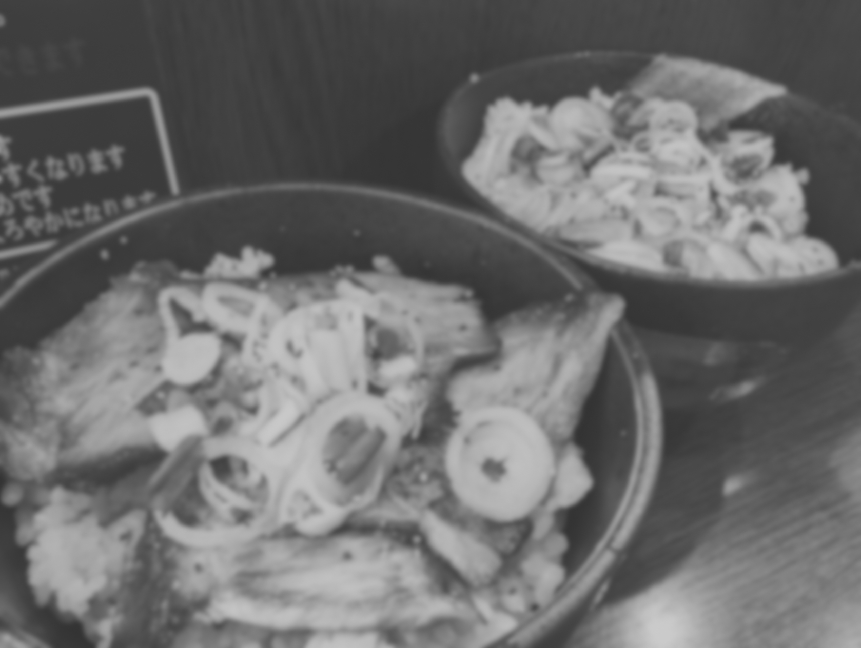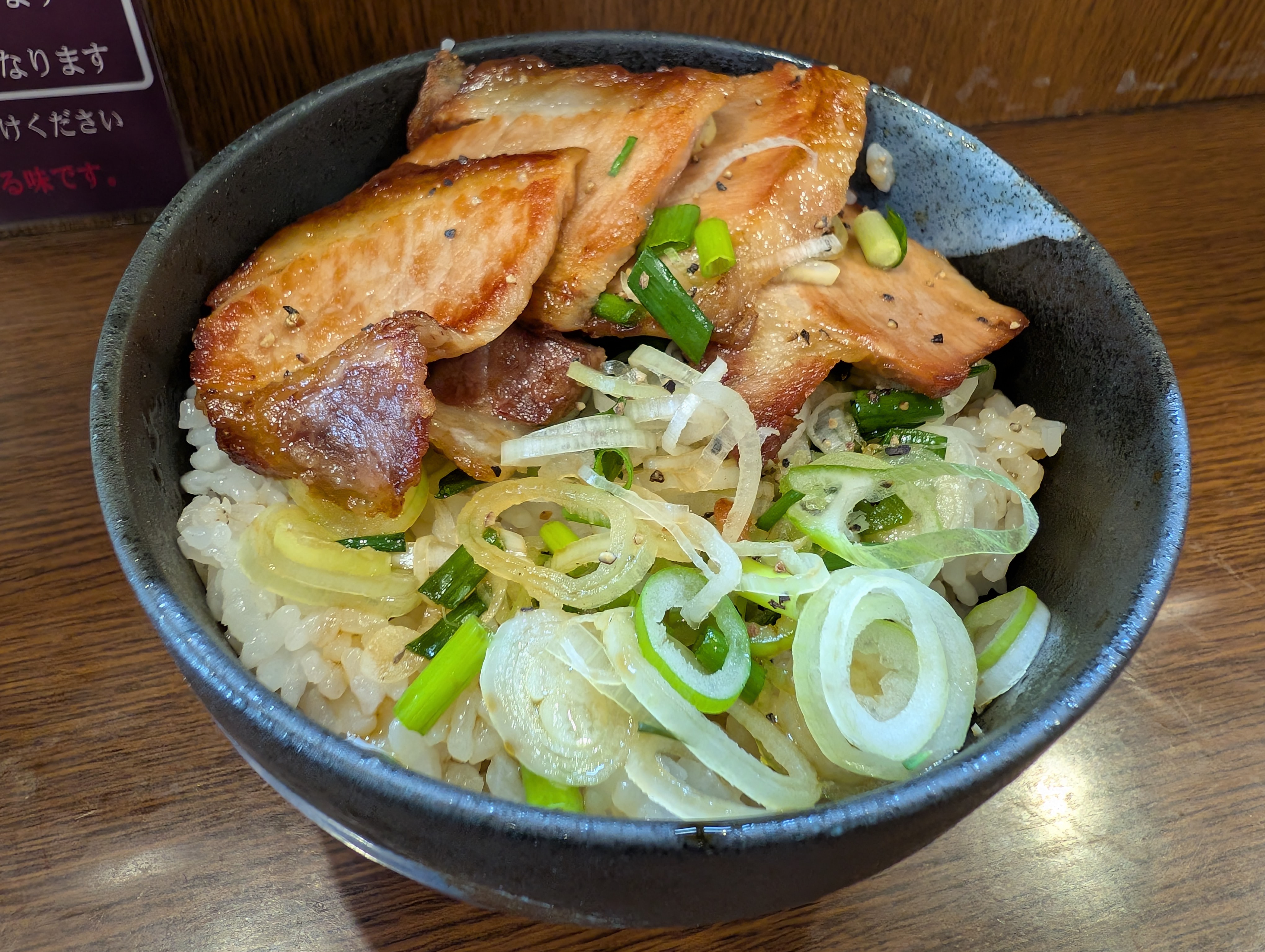 前回訪問時に確立した「W丼オーダー」スタイル。毎度の「ネギめし」@250円に、大山家に来たすべての天上人が食する「焼きチャーシューめし」@500円を合わせてみた。先日出たボーナスを散財し、天上界の食文化を体感してみよう!
