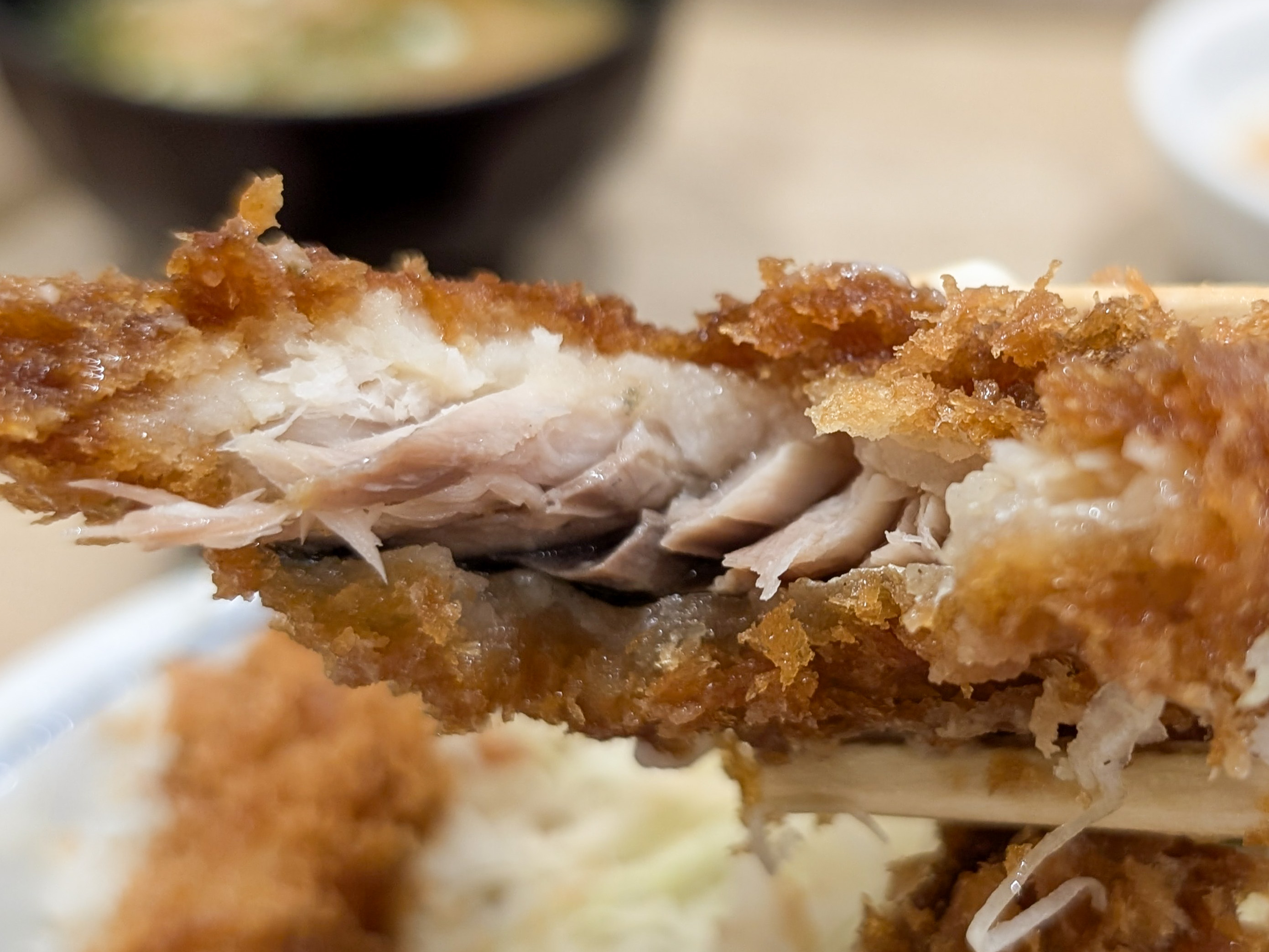 フライ自体は何をアドしようが大して変わらないけど、丼のご飯にはちゃんとかき醤油ダレがかけられてシミシミの差別化が施されていた。正直このタレだけでもご飯がすすんでしまう。……なんて食べてるとあっちゅう間に半分無くなっていたから定食のご飯で、