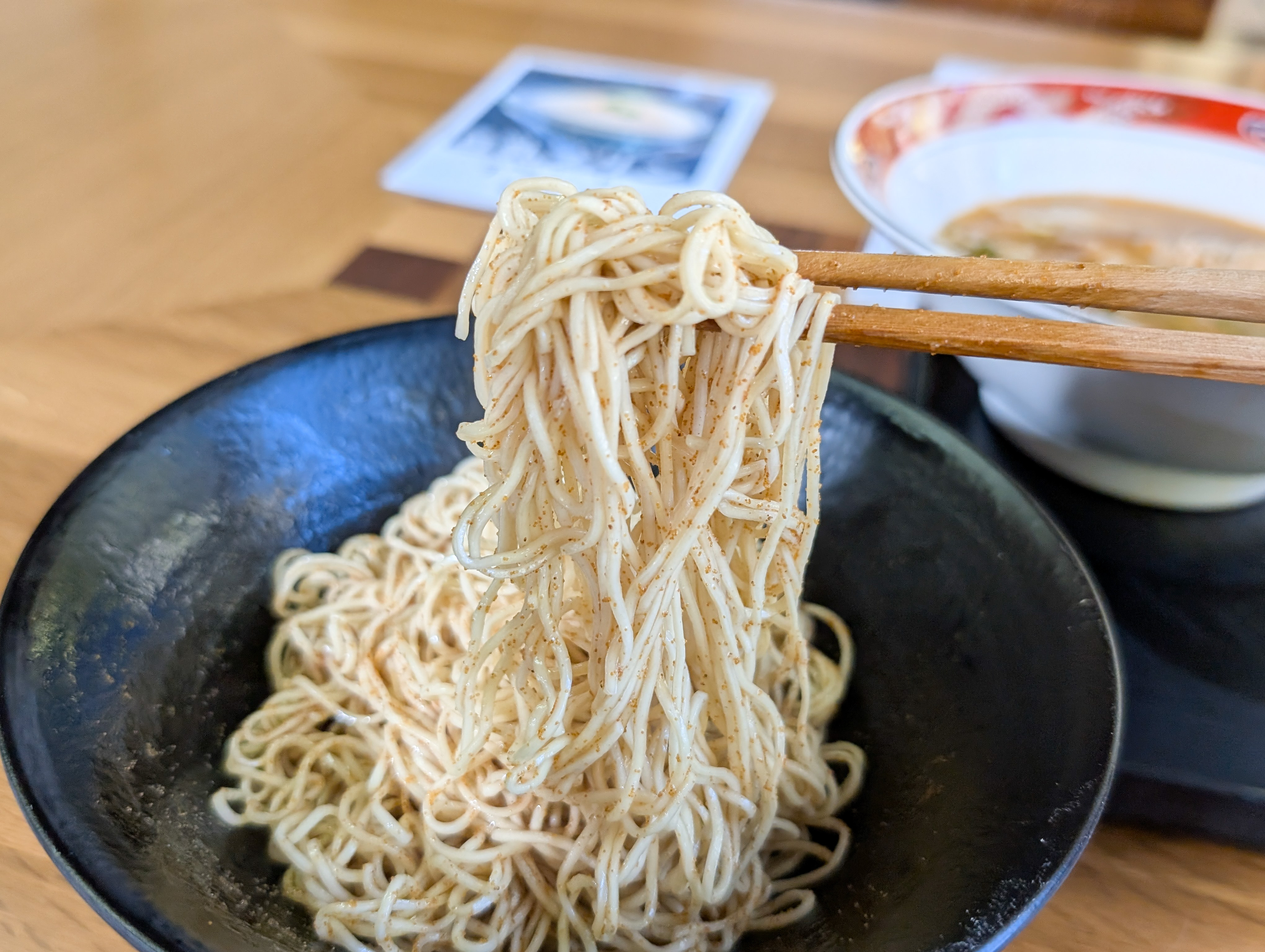 もちろん狙いは限定メニュー! 大盛りは出来ないようだが、替玉は可能。ただ限定専用の和え玉も用意されていたので、興味優先で今回はそれをチャレンジさせてもらおう。