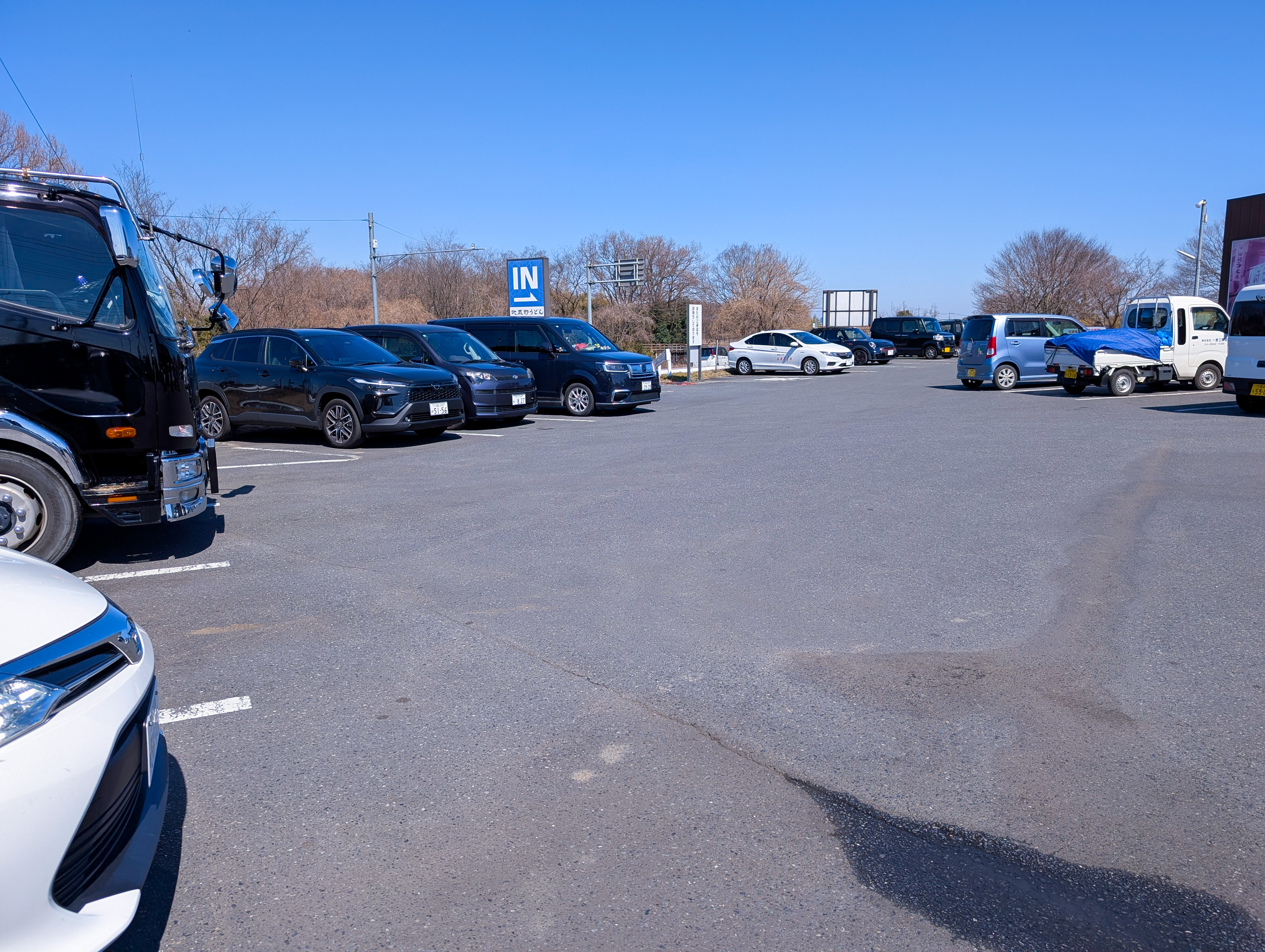 ▲だだっ広い駐車場。どんな車でも停め放題。