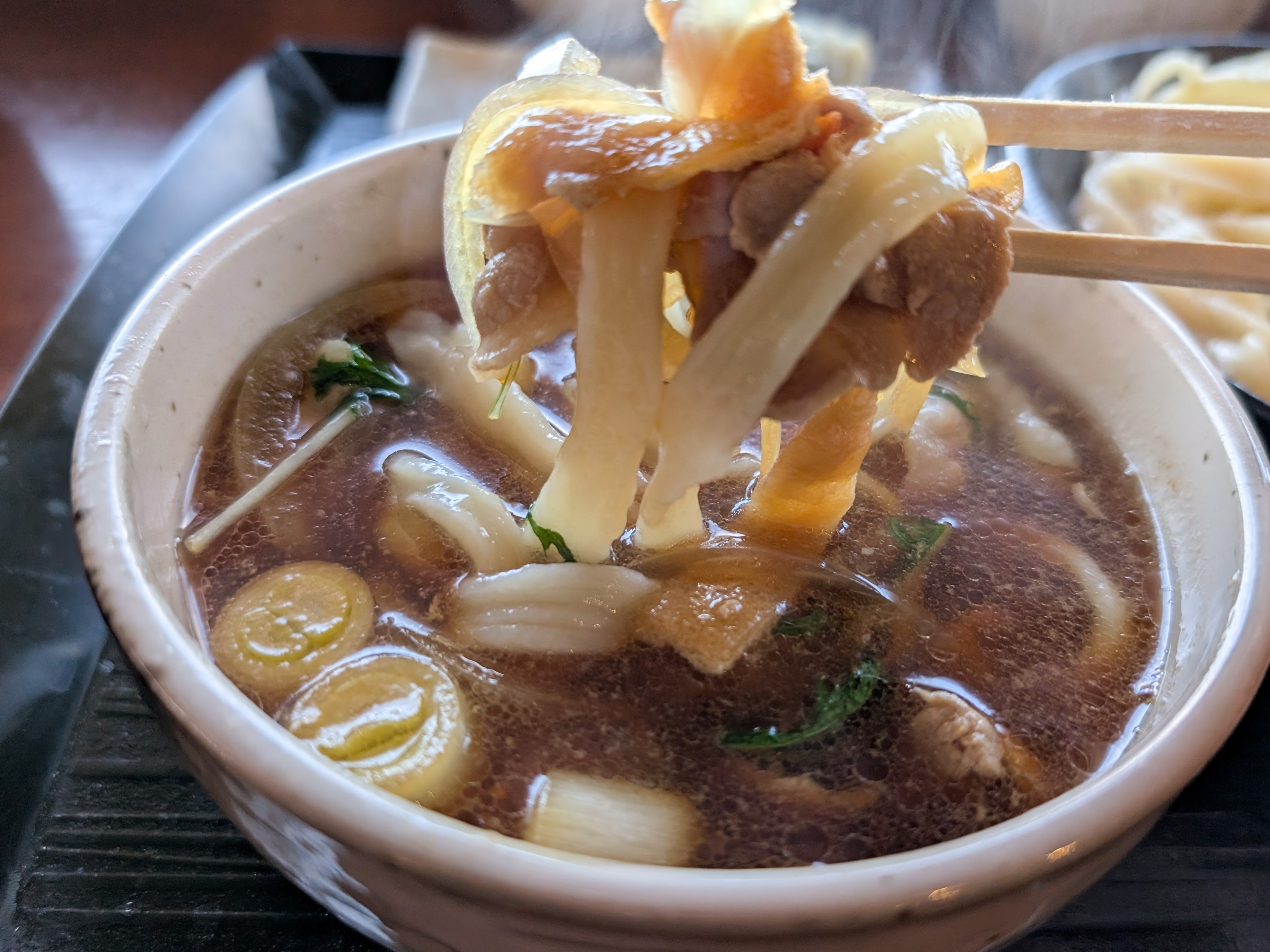 相変わらず変な形状のうどん。“ひっつみ”を麺状に長く引き伸ばしたような感じで一般的な武蔵野うどんではないけれど、このピロピロに汁がよく乗るので悪くはない。うどんガチ勢でない限りすぐ慣れるかと。