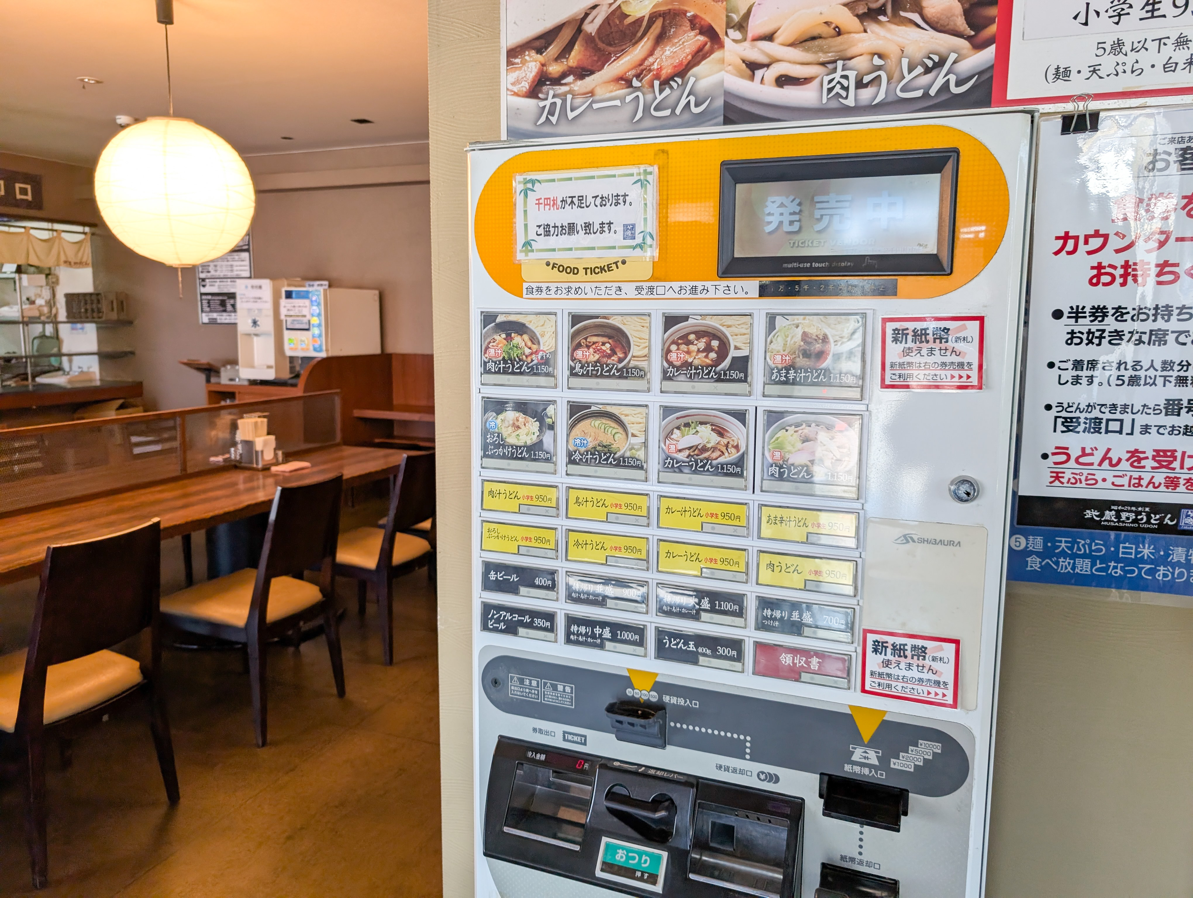 メニュー構成は前回(2024.11)来た時と同じだったが、値段はすべて100円アップしていた。それでも1150円ならまだ許容範囲だろうか。ちなみに、写真の券売機は新紙幣使用不可で、右隣に使用可の同型券売機があるのでご参考までに。