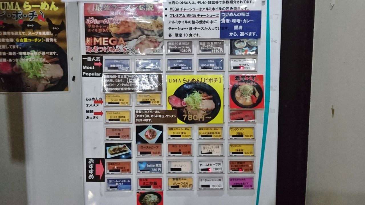 とりわけ目に止まったのが、今まであった「濃厚ラーメン」や「あっさりラーメン」が無くなって、【UMAらーめん ビポチ】なるマクドナルト的ネーミングセンスのラーメンに集約されていたこと。