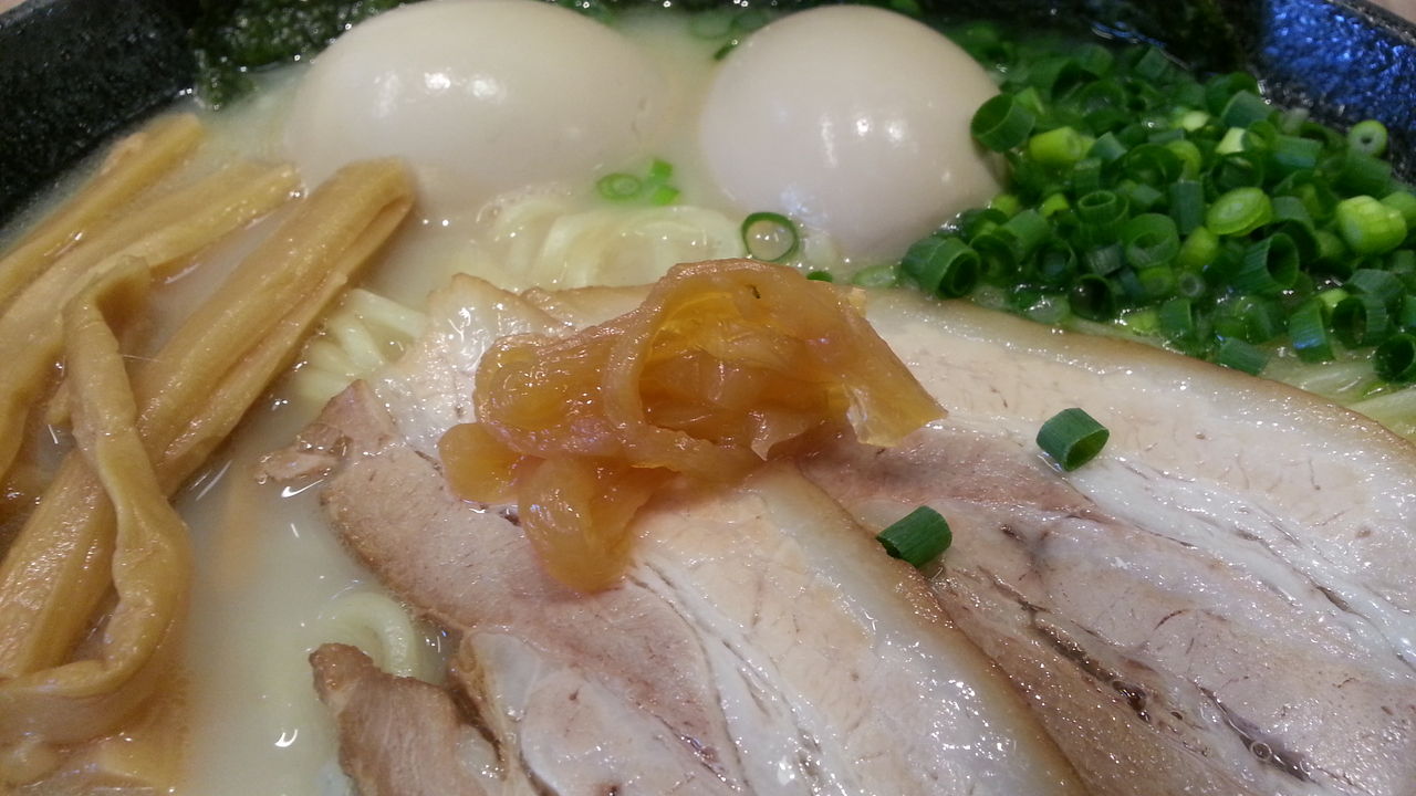 綺麗なビジュアル。黒いどんぶりに白いスープが映える。見た目は何だか豚骨ラーメンみたいだけど、豚骨どころか動物系を一切使っていないって言うんだから、期待しちゃうよな。