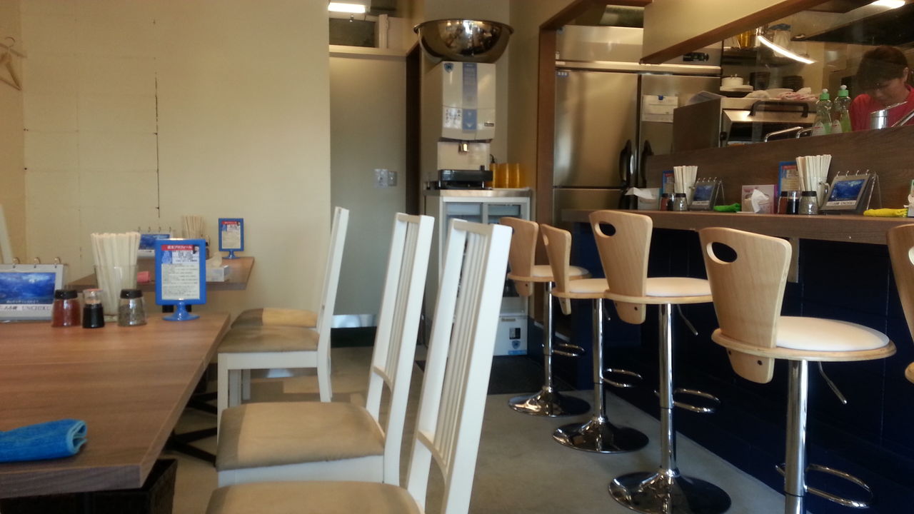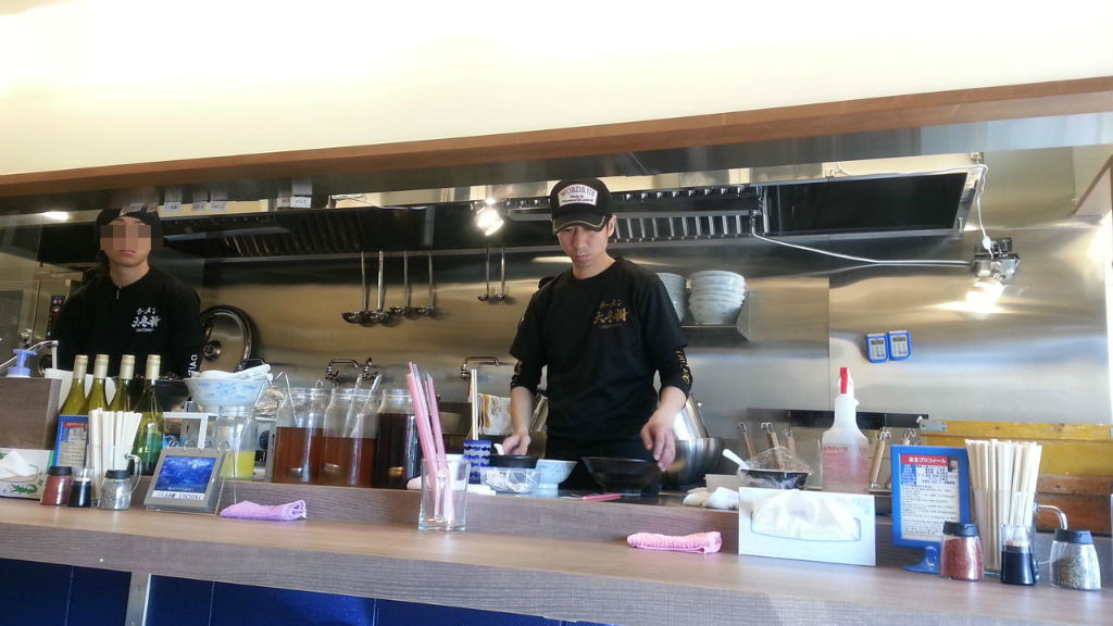 14:15入店 先客2(後客4)。混んでいるかと思って昼時避けたんだけど、予想以上に空いていた。厨房ピカピカで、流石居抜きでなく新規に作った店舗だけあって洒落てて凄く綺麗。