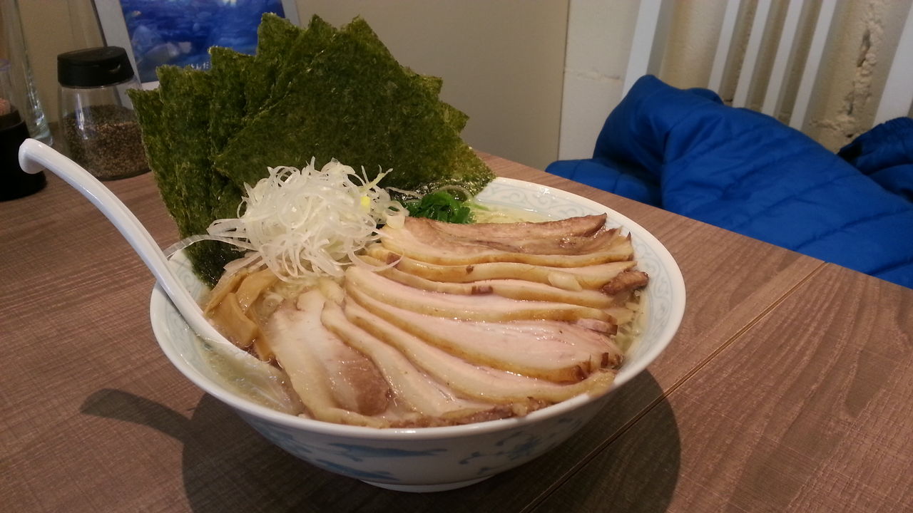 ちなみにこれは同行者S氏の注文した「海の中華そば+肉増し」です。見た感じは清湯系のスープに細麺が合わせてある。肉は全部で8枚。肉がこんだけ入ればどんなにスープがアッサリでもガッツリいけそうだ。これも美味そう!