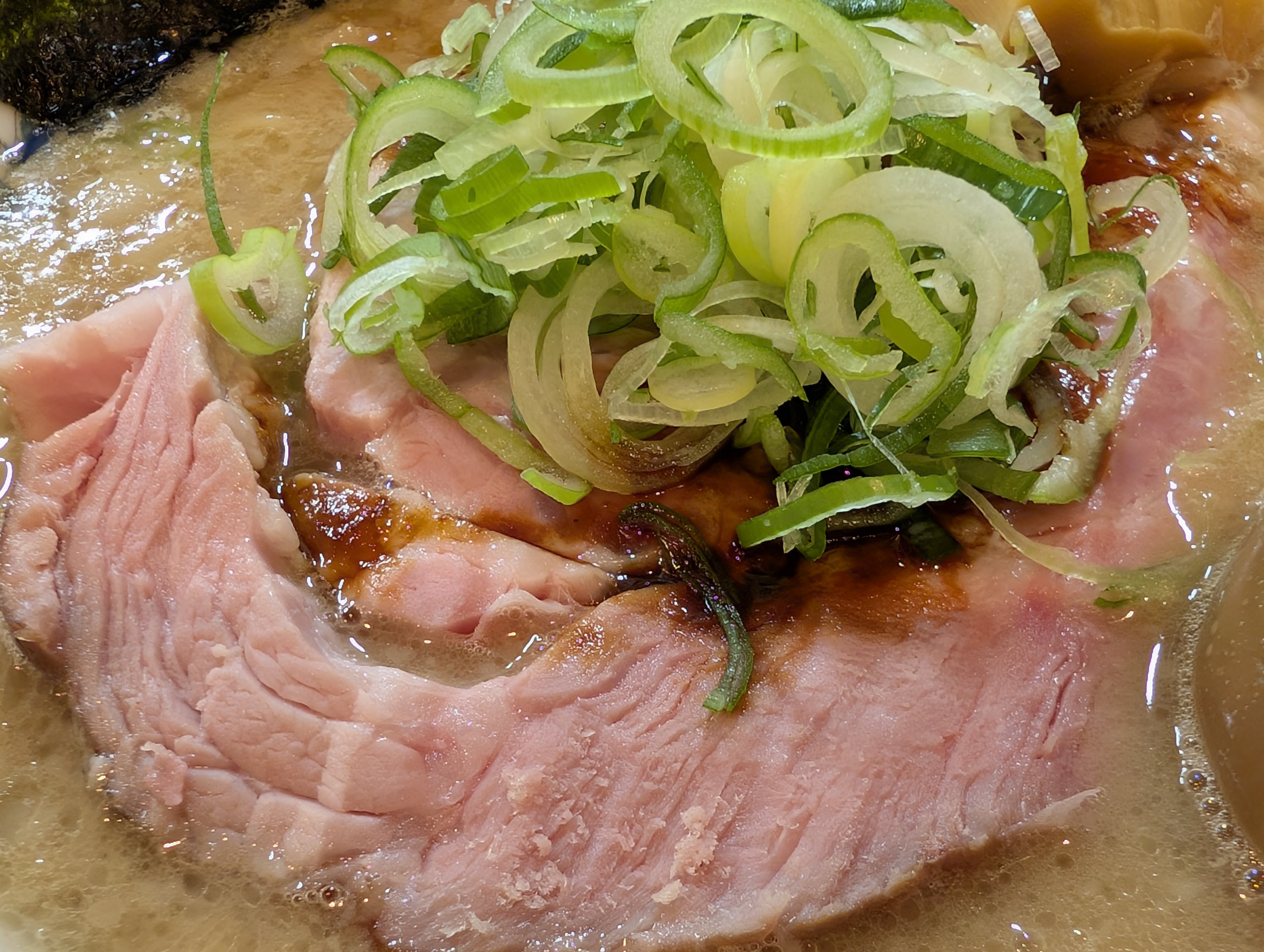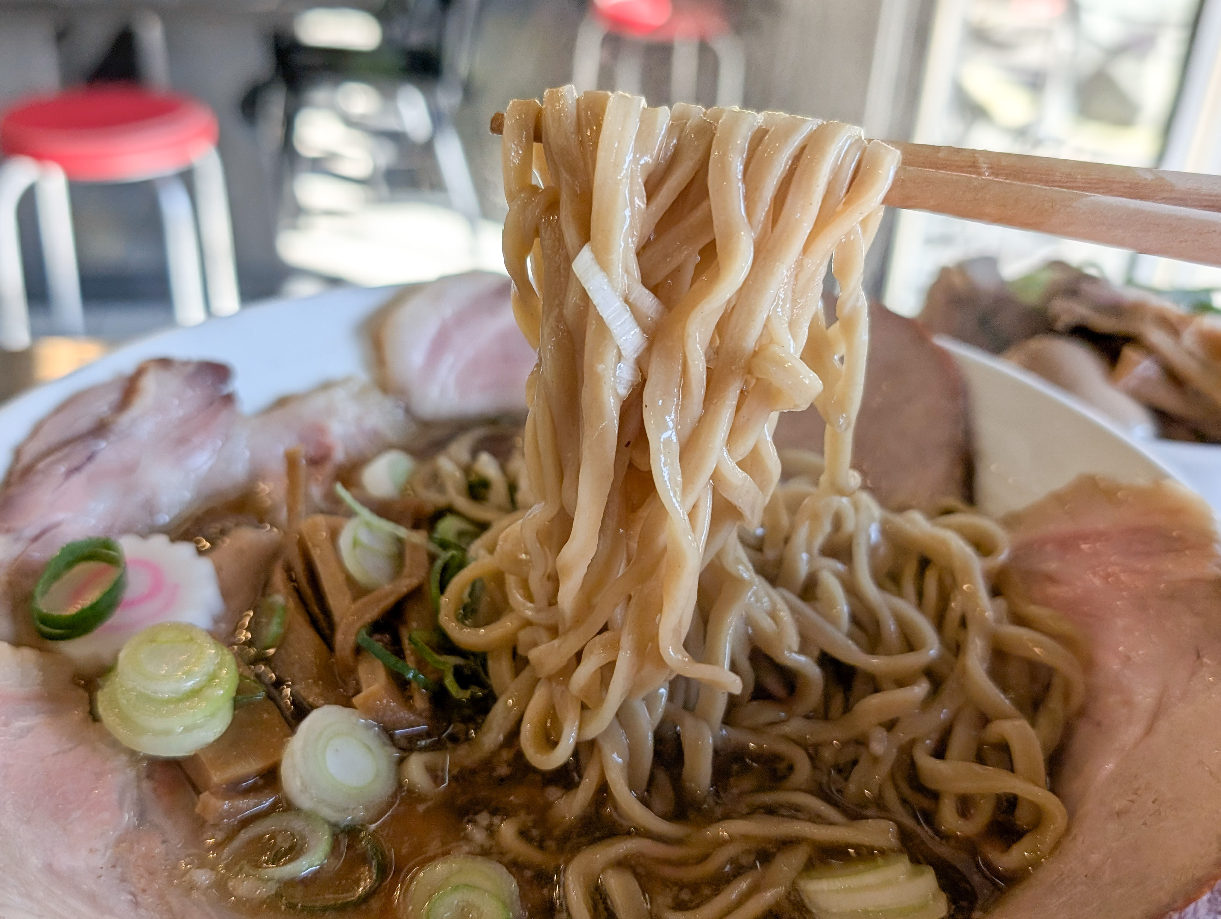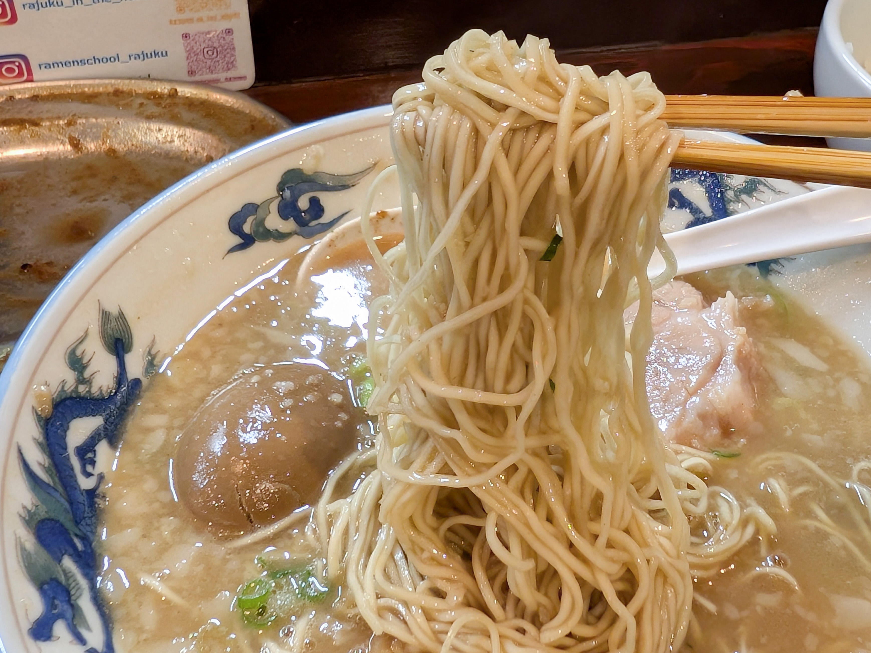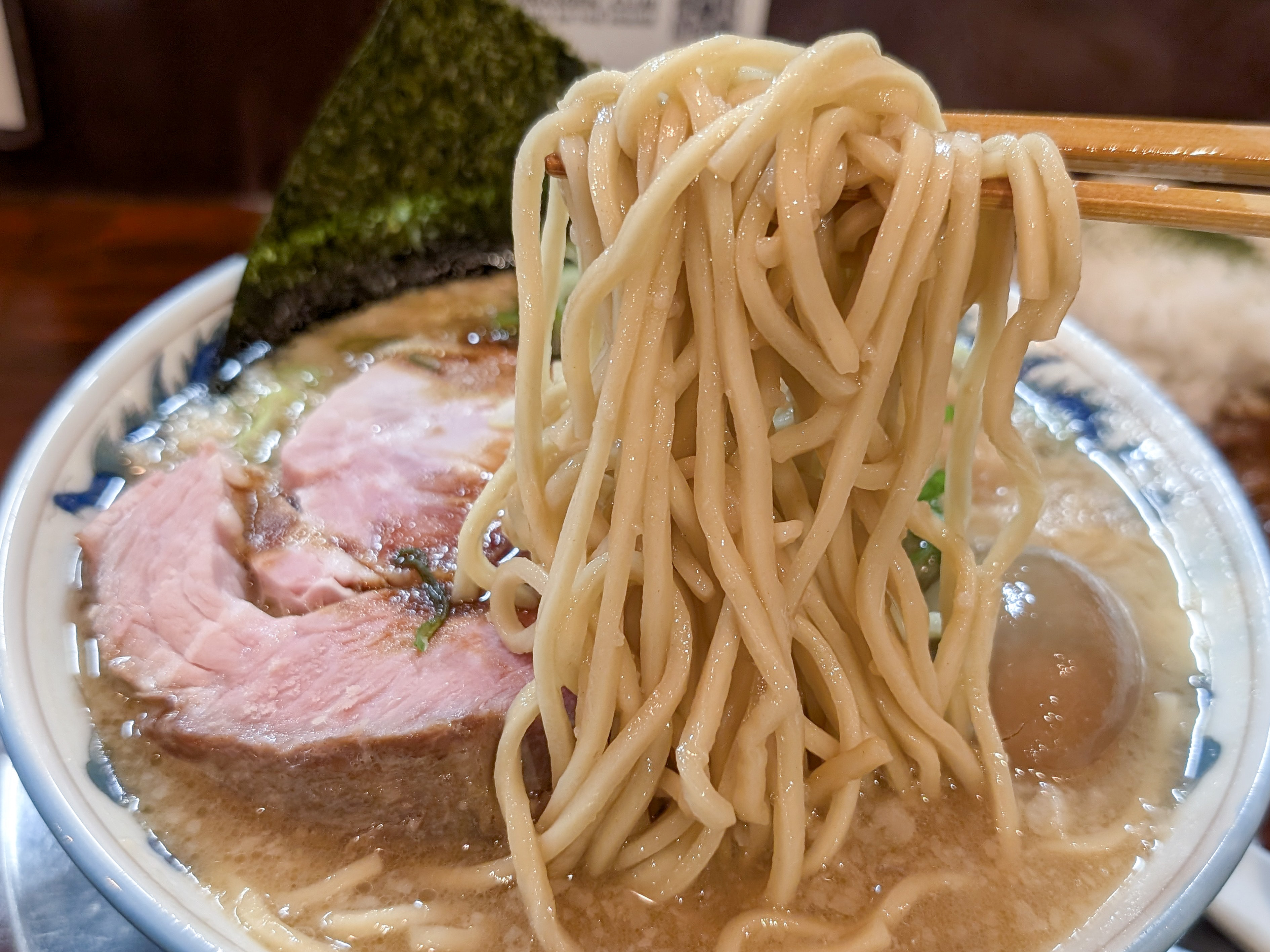 数日前のXで麺を変えるとの告知があったけど、はっきり言って違いはよく分からなかった。ただ、このムギュっとしたテクスチャは、強ニボで決めたスープとよく似合っている。