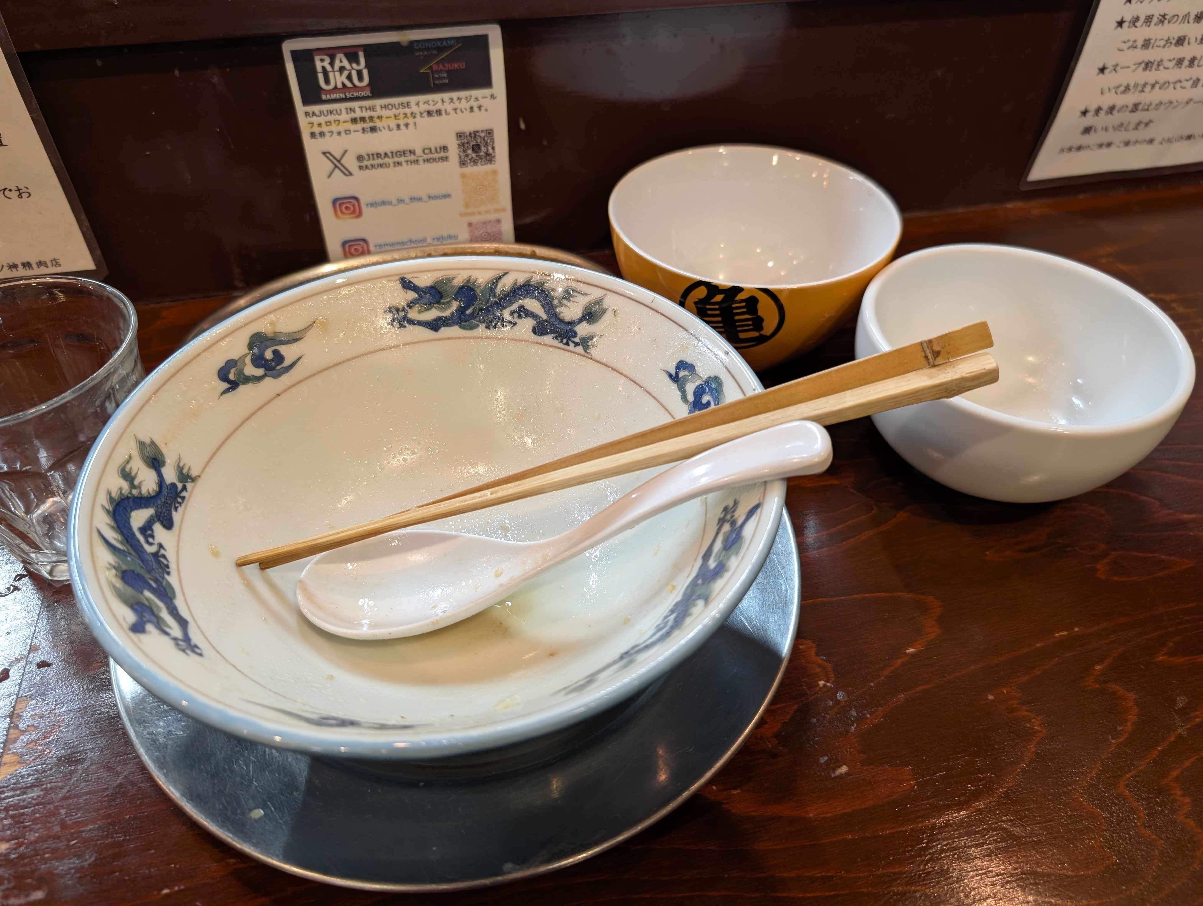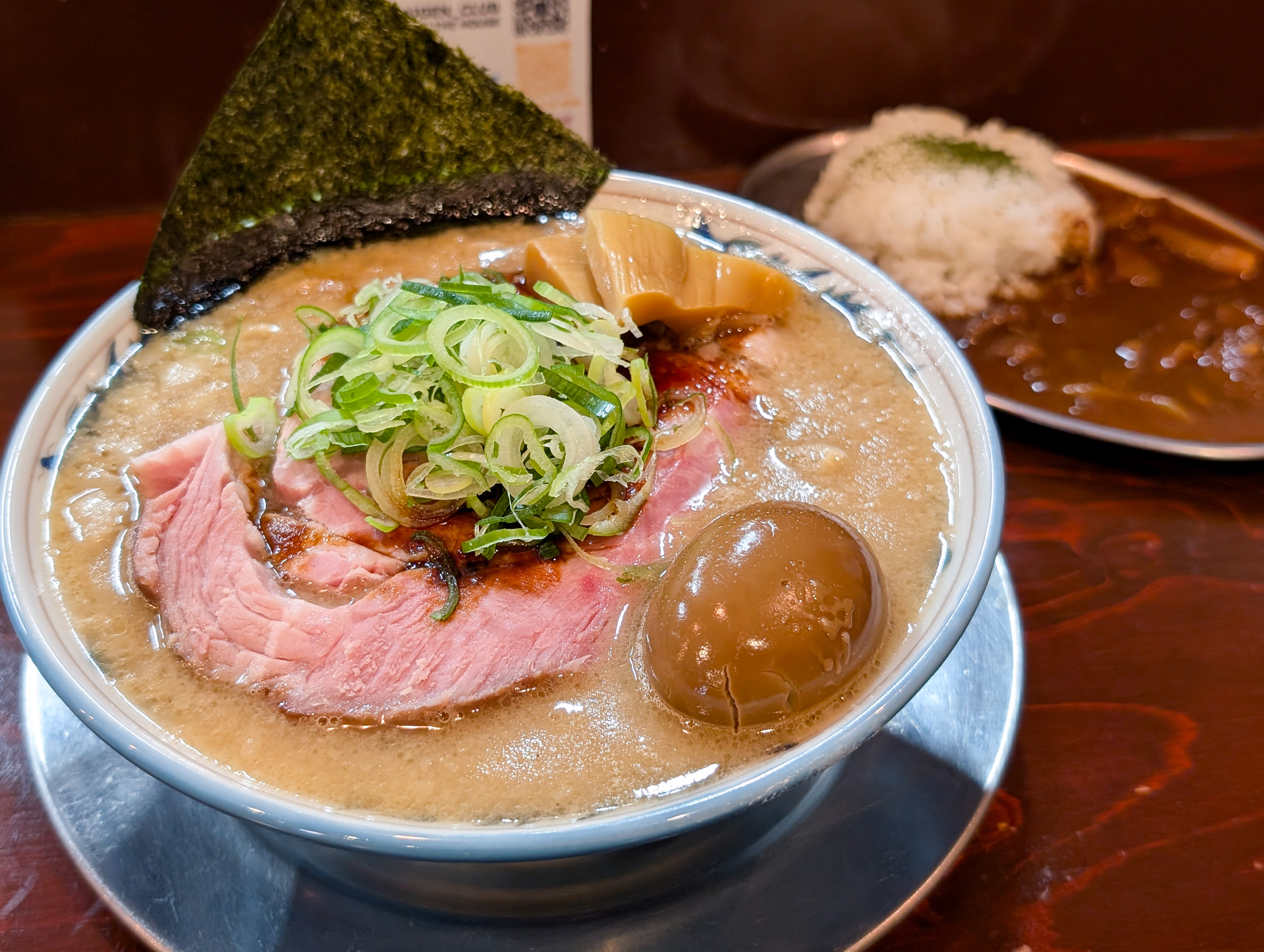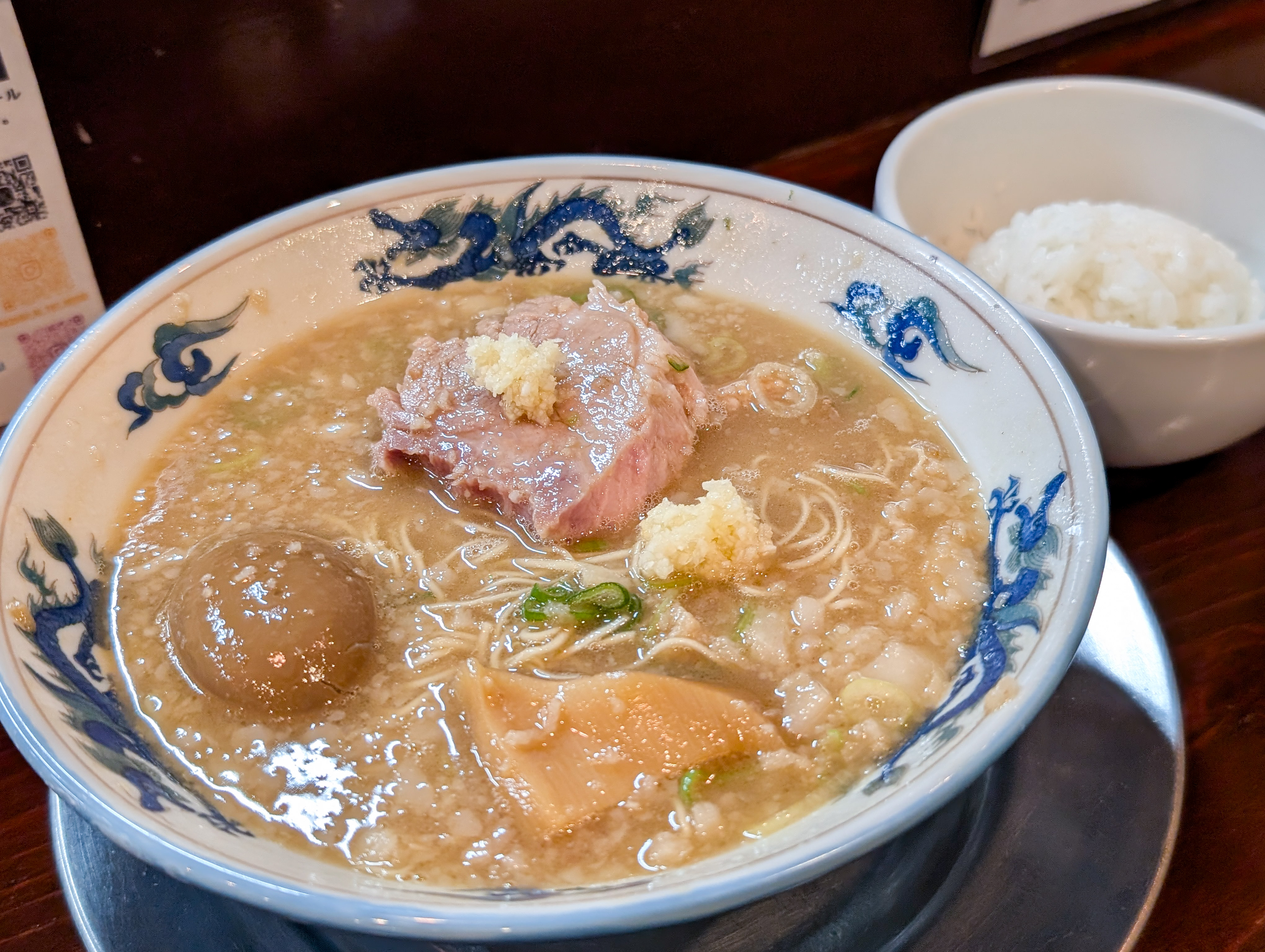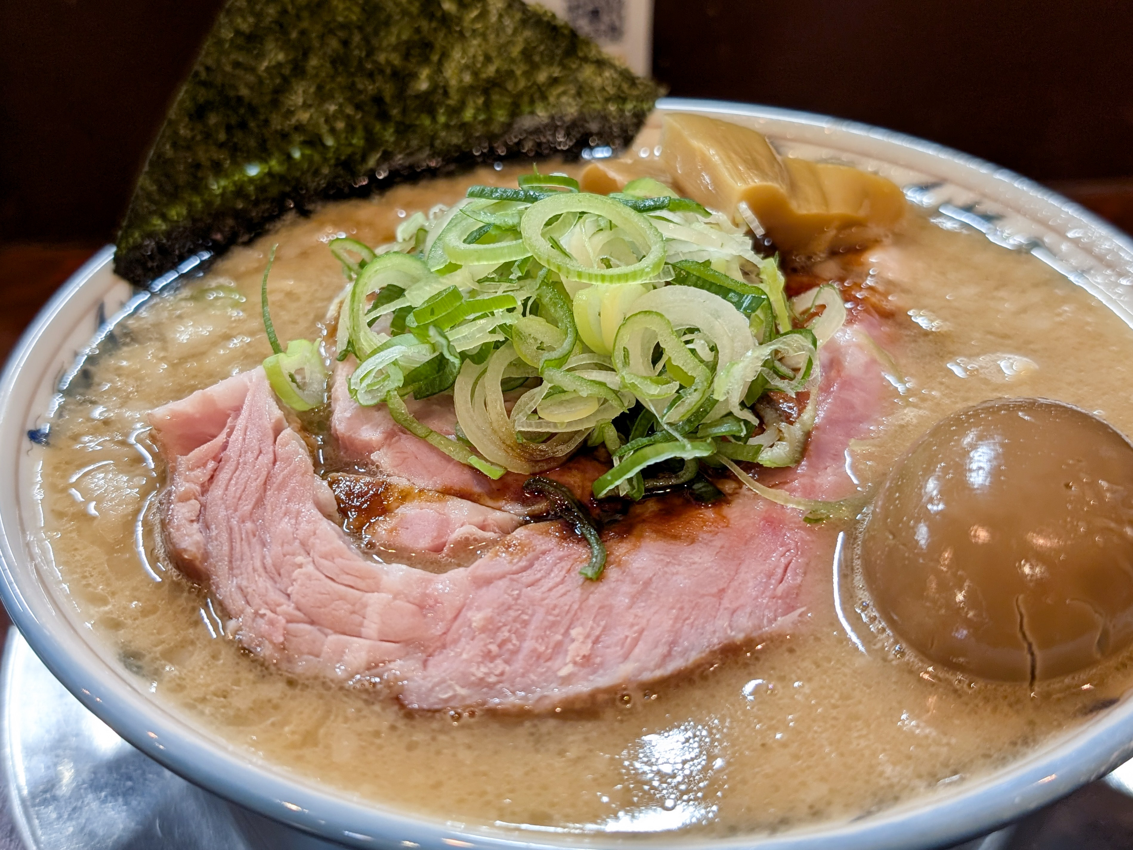 数日前のXで麺を変えるとの告知があったけど、はっきり言って違いはよく分からなかった。ただ、このムギュっとしたテクスチャは、強ニボで決めたスープとよく似合っている。
