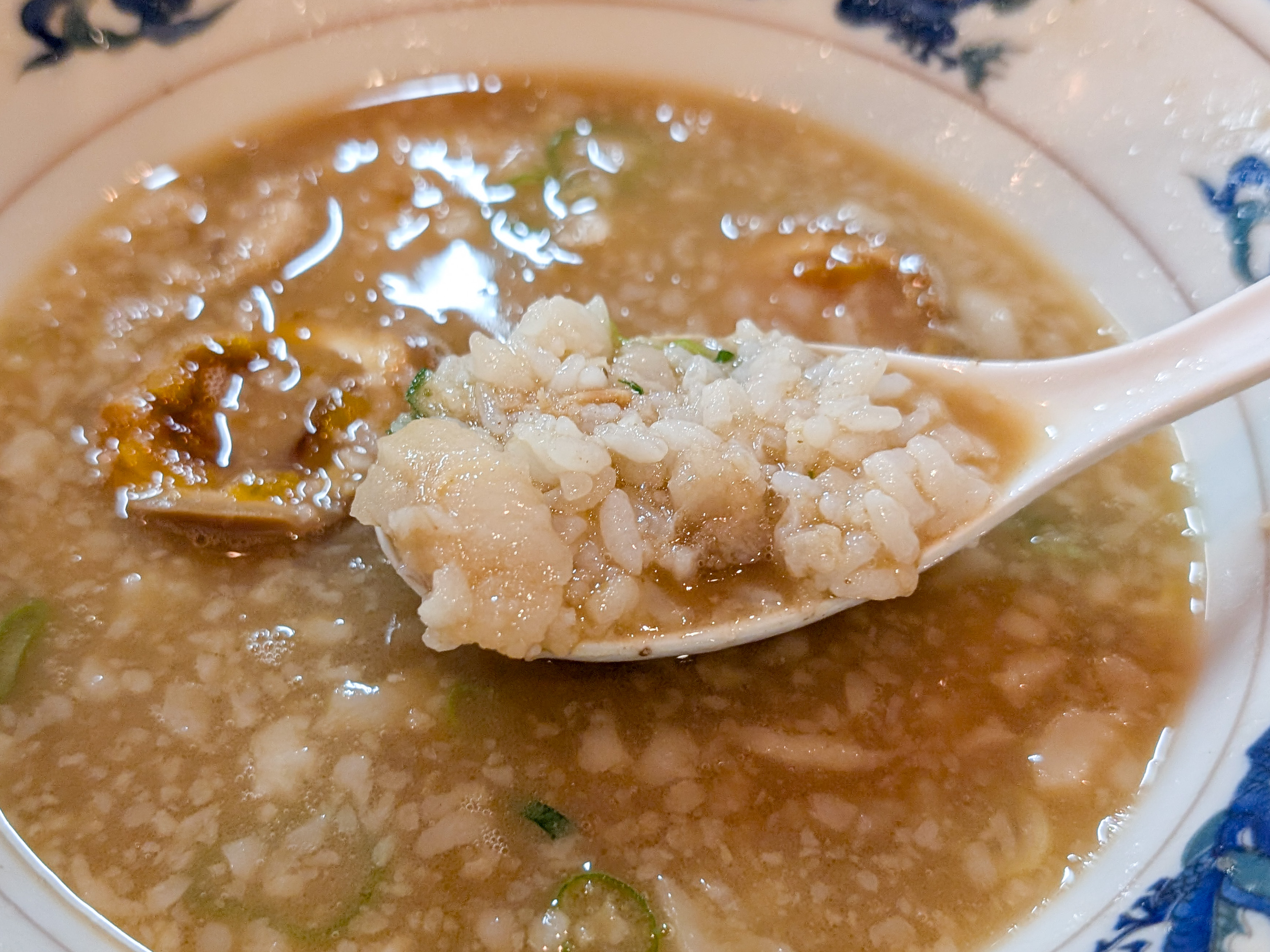 しっとりチャーシューがここにもたっぷり。柵状にカットされたものもあったりと、食感がランダムでこれはこれで楽しい。なにより味玉の半熟な黄身が絡むことで、オカズみが増して昇華する。図って味玉を焼豚ご飯に乗せてくれたのかは不明だが、結果的にこれが焼豚ご飯の模範解答だったのかと。ちなみにワイン風味はまったく分かりませんでした。