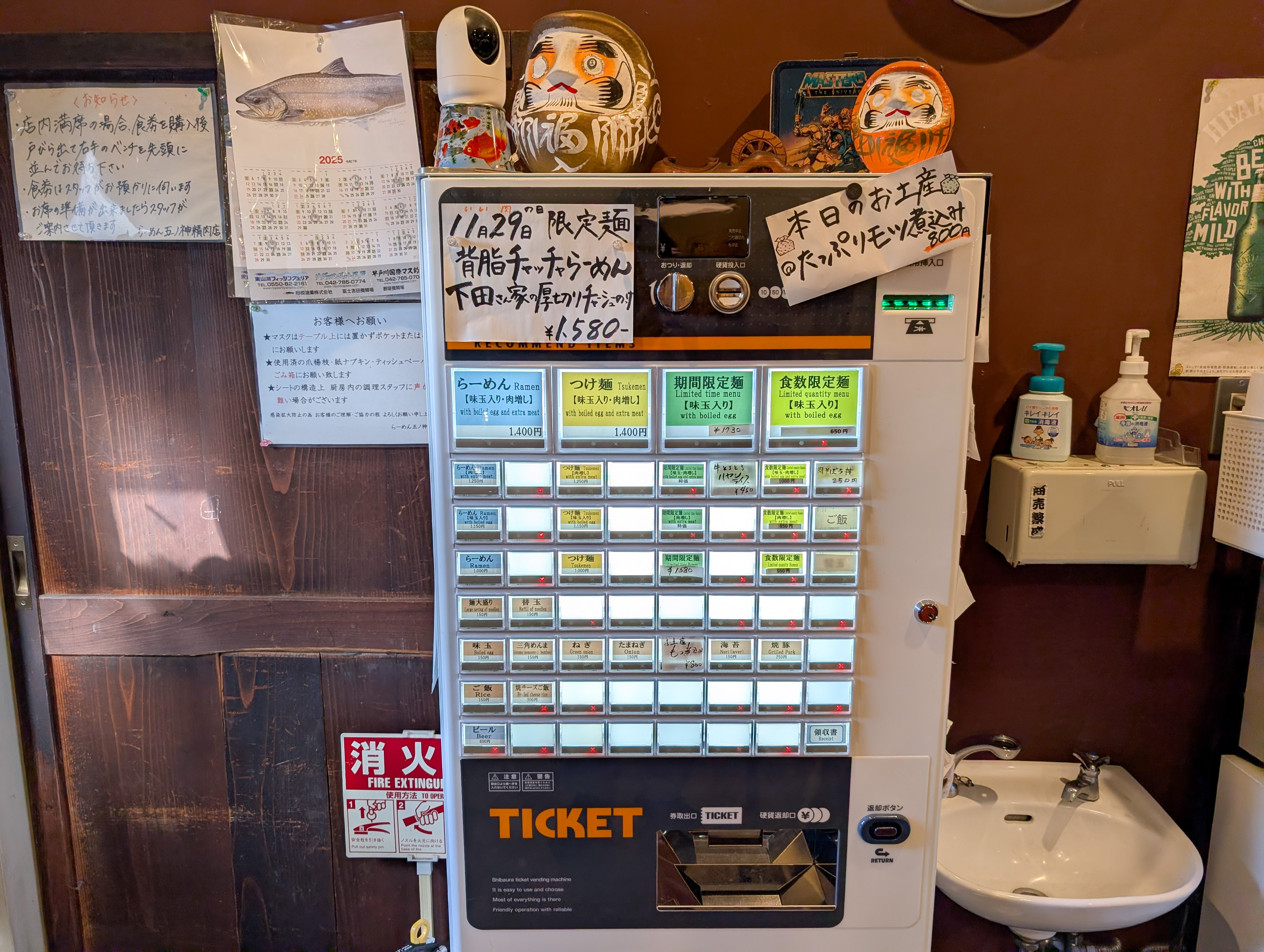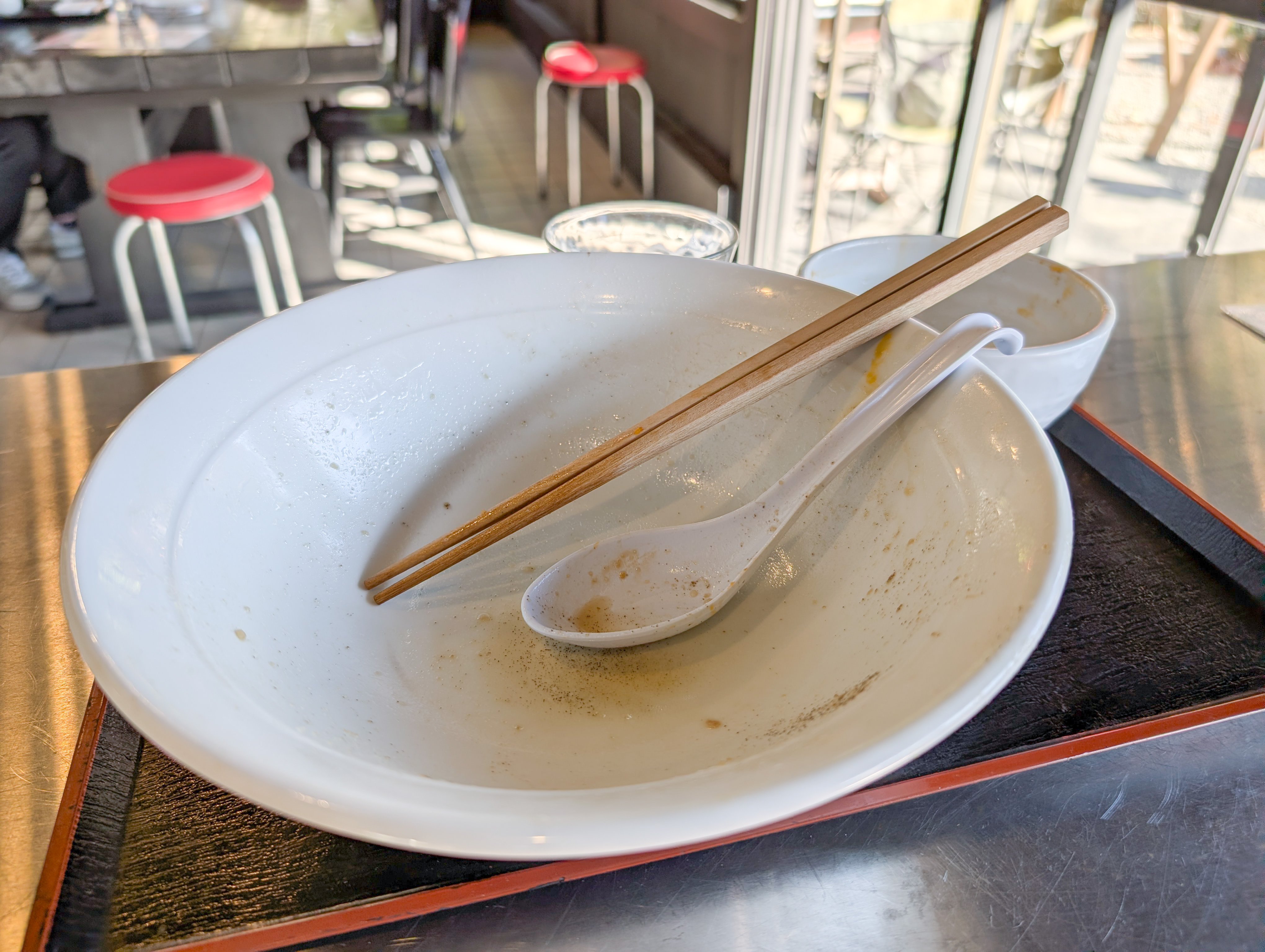 暇さえあればXをパトっている身の上なので、突発的に提供される限定のことは知っていた。最近で言えば「背油煮干しラーメン」とか「ブラック台湾ラーメン」など。なんなら「チャーハン」やら「豆乳プリン」までもが登場している。レギュラーメニューをコンプしていないのでなんだが、なにか面白い限定でもあったらいいな♪と期待したのも束の間、今日にいたっては限定の提供はなく前訪と同じレギュメンのみの提供だった。んんん残念。(プリンの気分じゃない)
