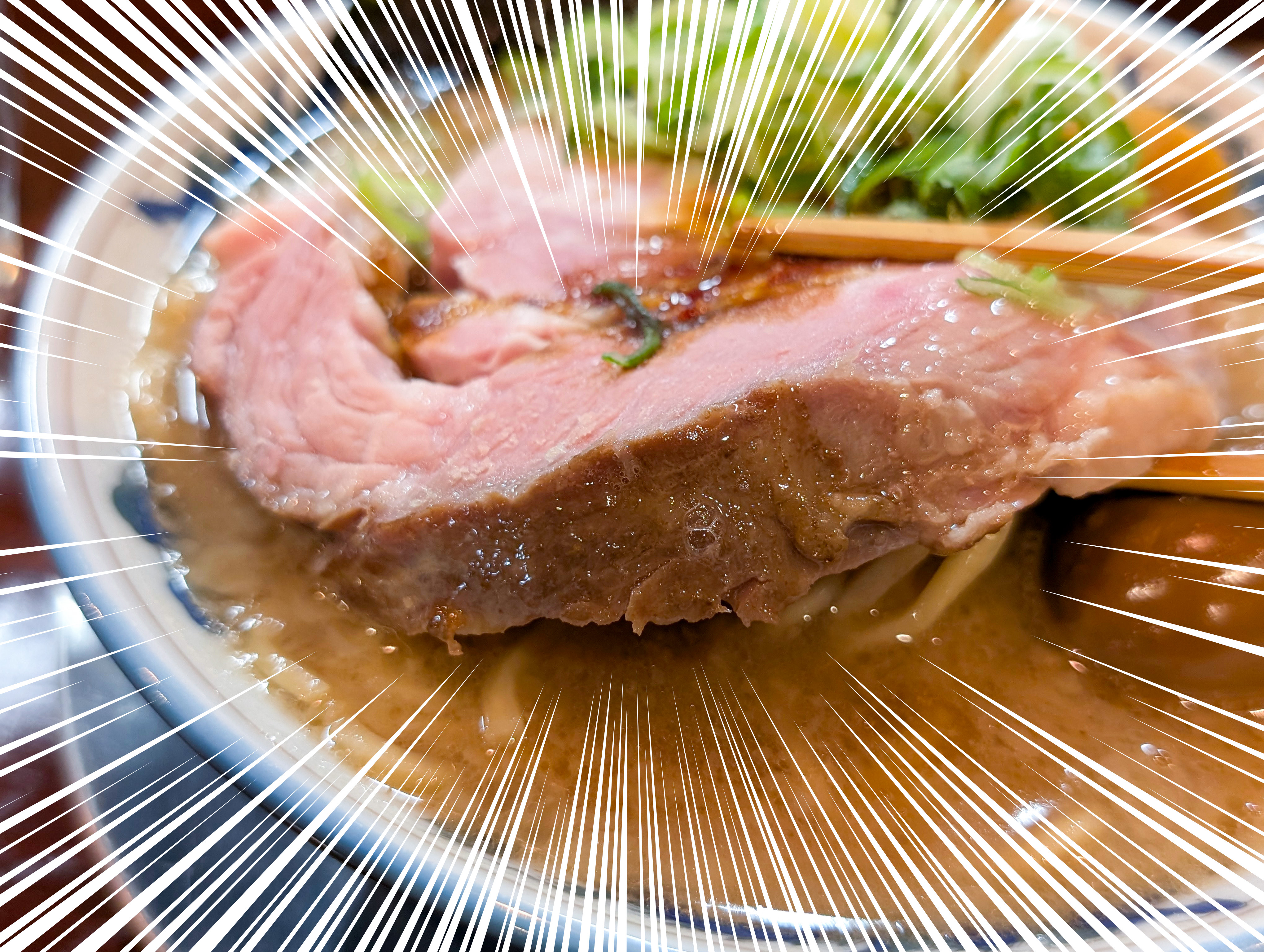 やはりチャーシューがかなりの食べ応え。写真だと一見パサったタイプに見えなくもないが、全エリアしっとりした食べ心地。大口開けてひとくちで頬張る悦。最高じゃないか!