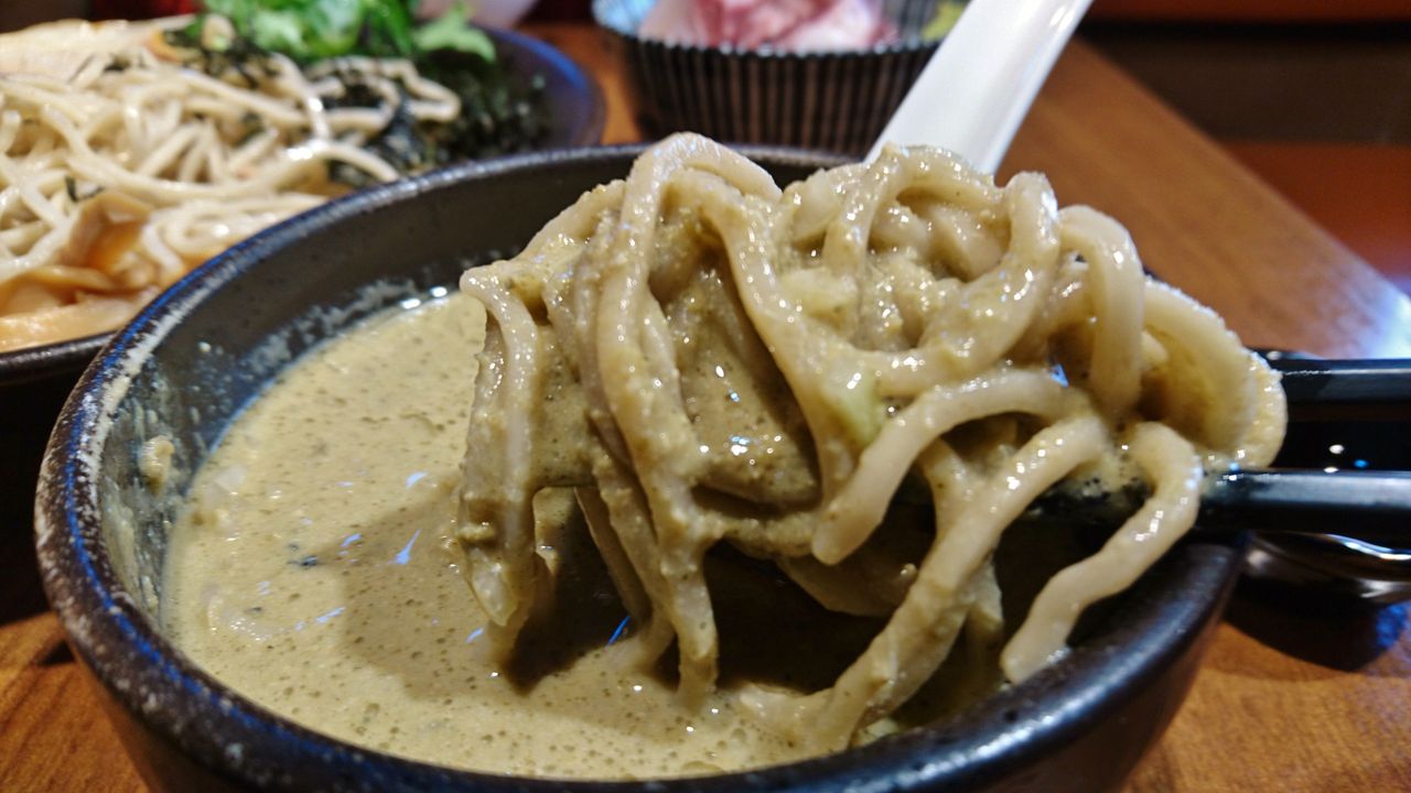 これくらいの麺には、濃厚系のヘビータイプのつけ汁じゃないと勝てませんわな。