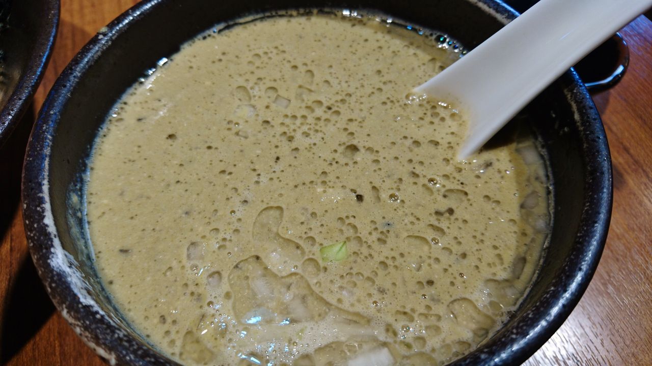 うっすら緑がかった、グリーンカレーみたいなつけ汁。