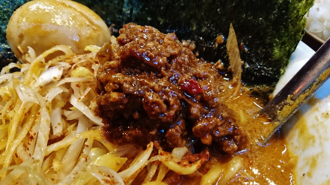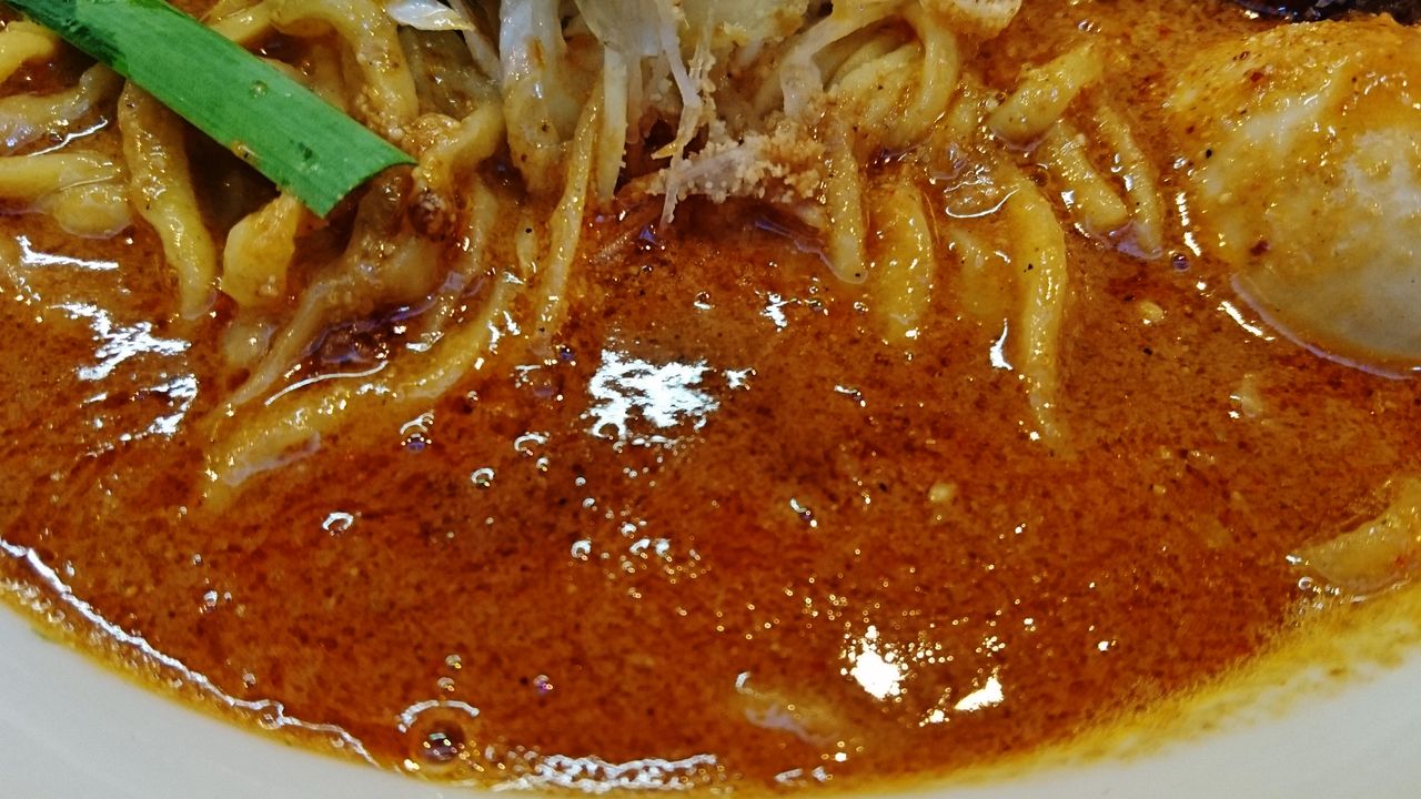 かなり甘めに味付けられているので、麺に絡めると刺激が和らぎ食べやすい。カレーのチャツネ的な役割だろうか、風味がグッと良くなって豚骨担々の旨味が伝わってきます。