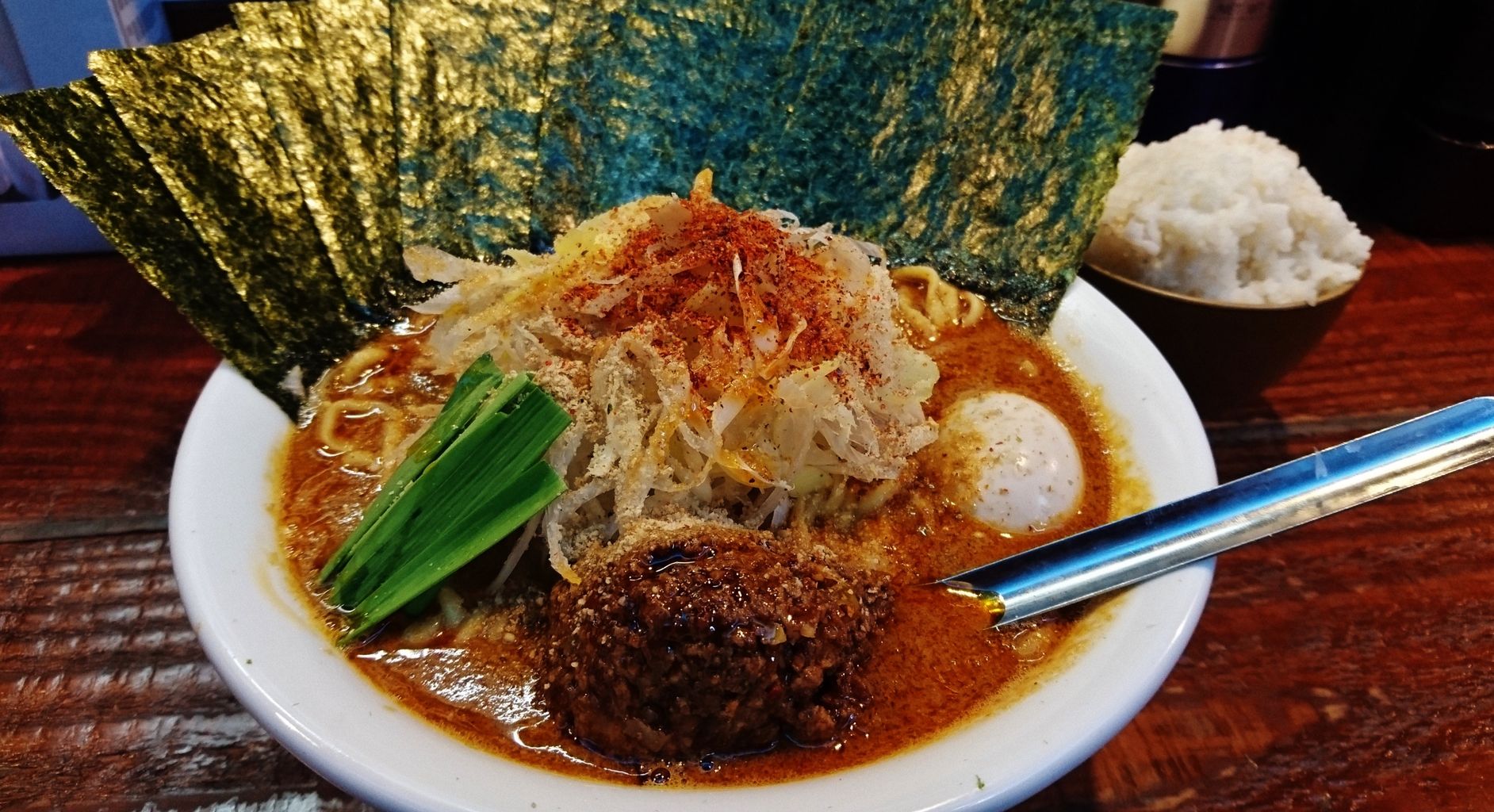 家系の象徴でもある海苔は、デフォで3枚+クーポンで7枚の計10枚。たとえ姿が担々麺になろうとも、そのスタイルは崩しません。
