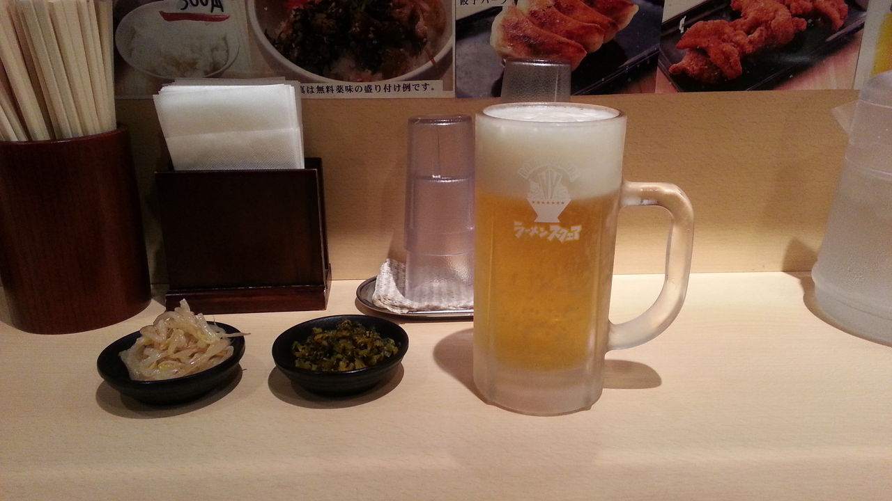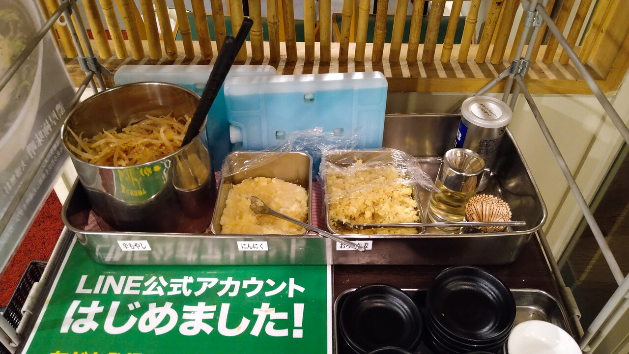 ビールのアテになるのが「辛もやし」だけってのは寂しいけど、最近の新店は設置しないのがほとんどだからあるだけマシか!