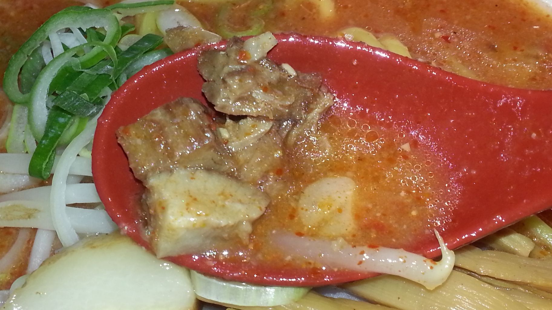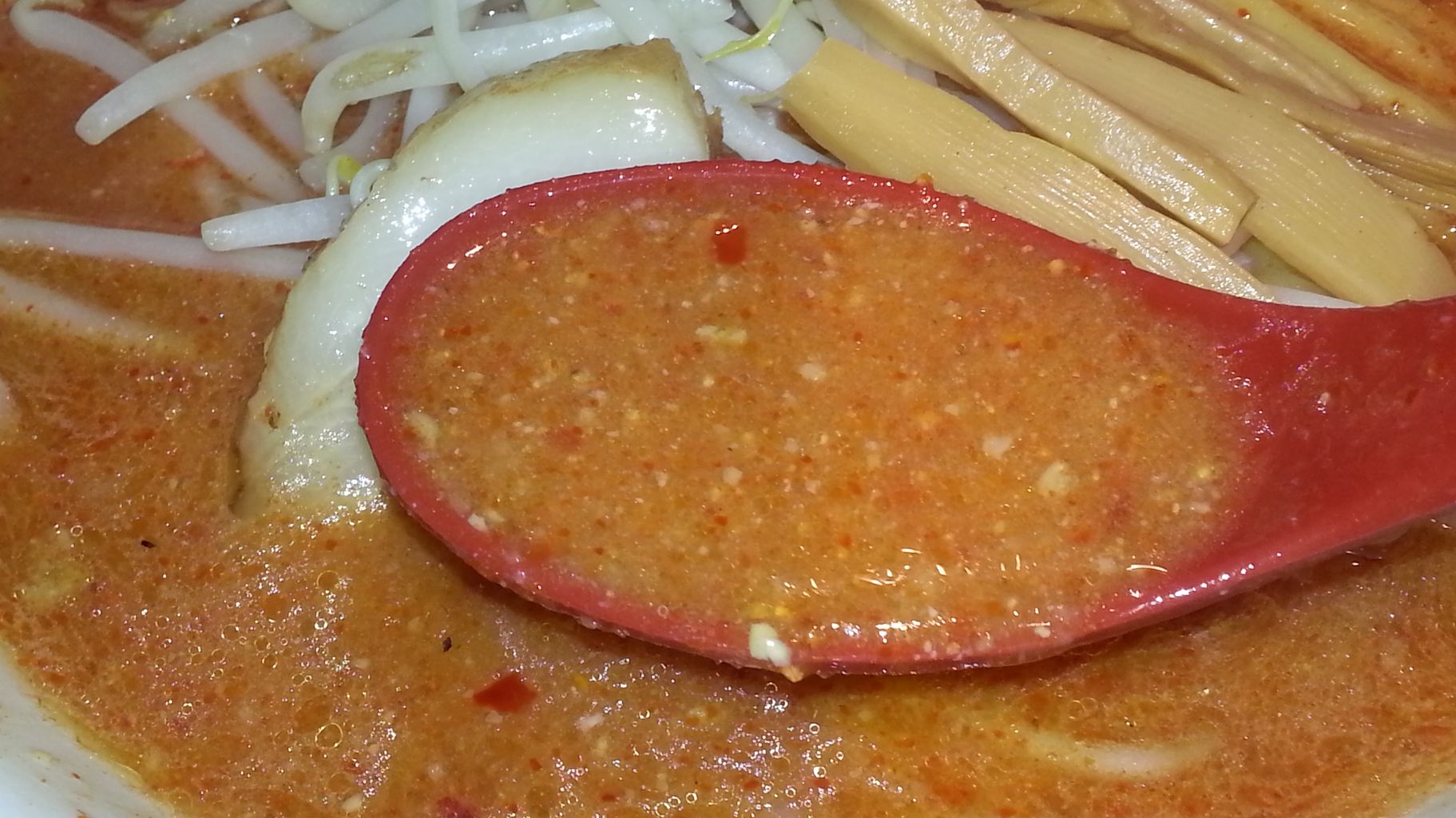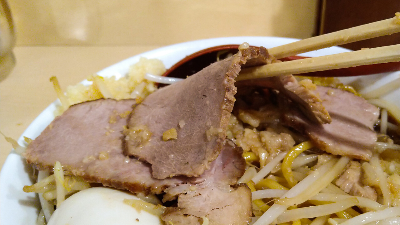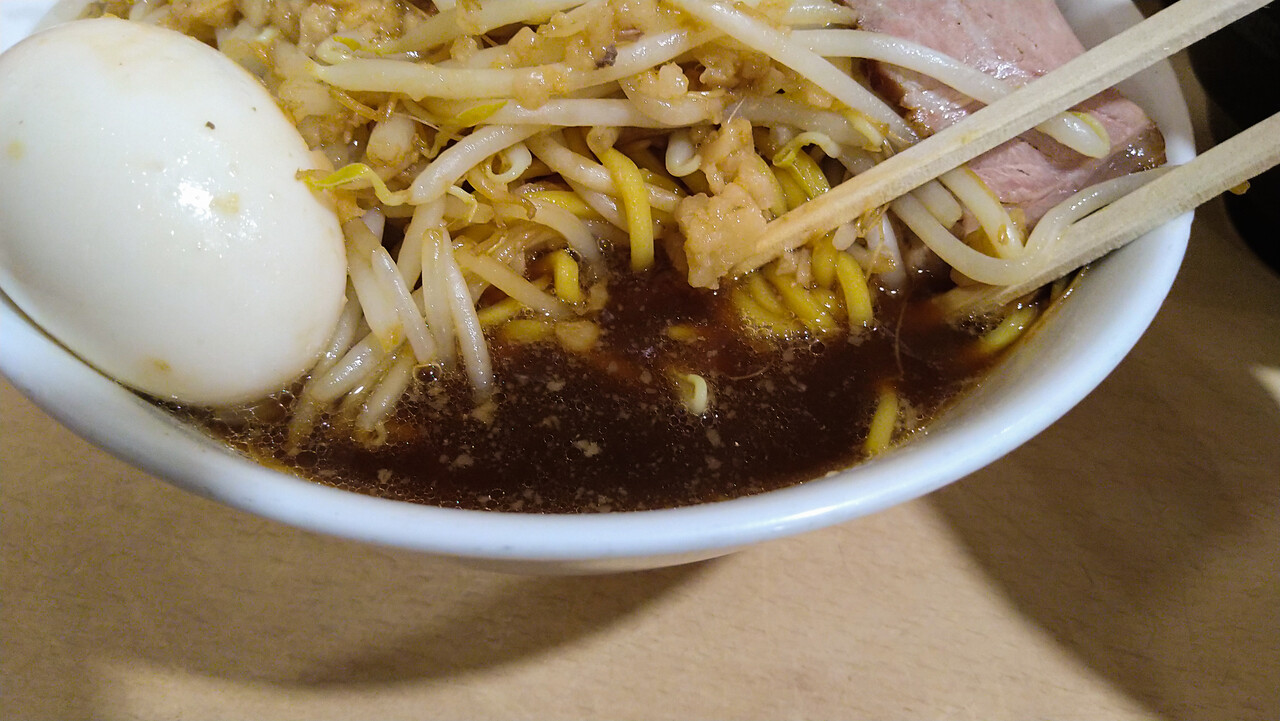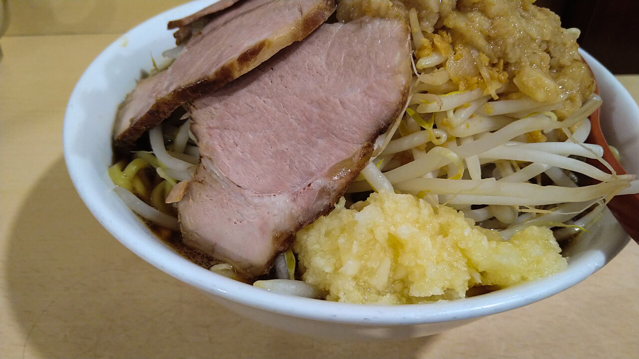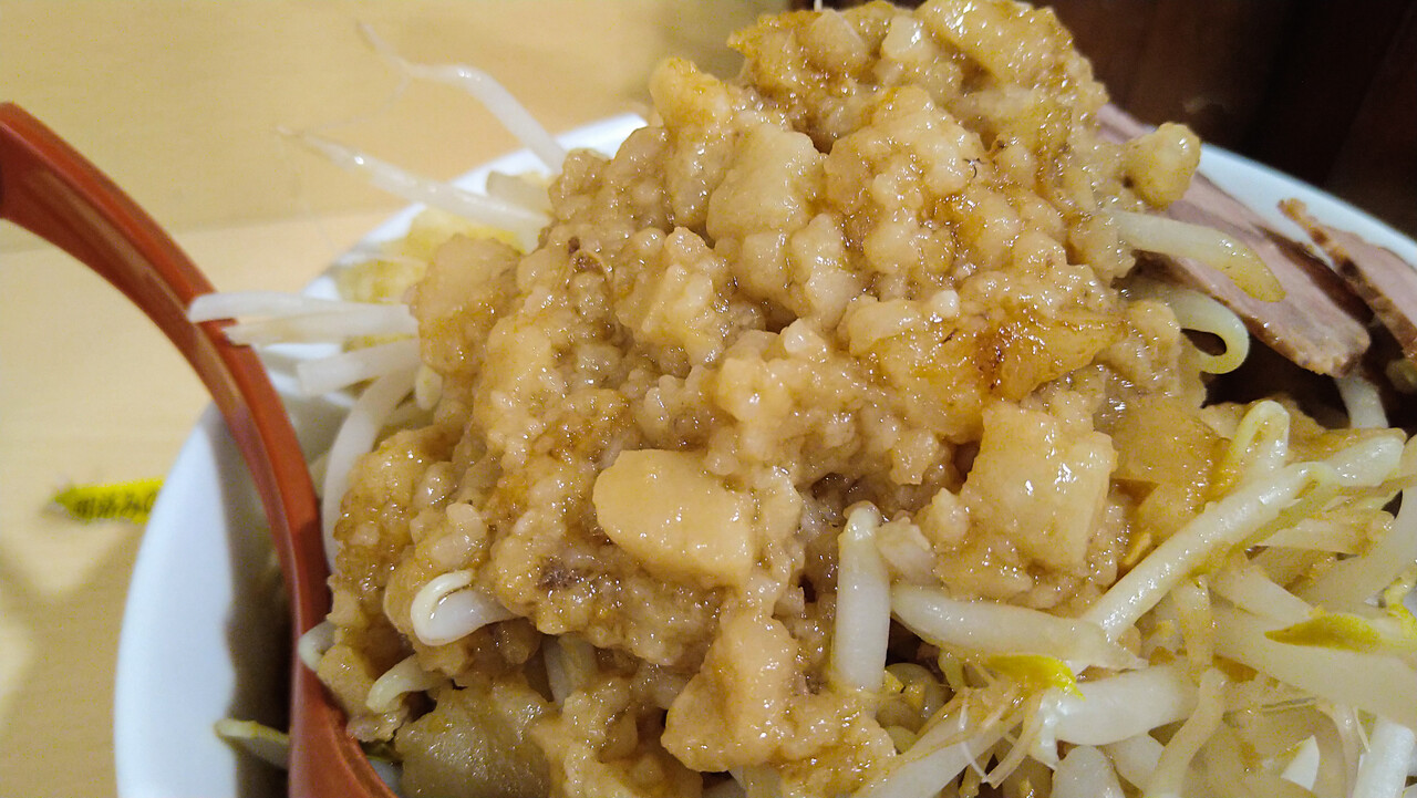 最終的に脂とニンニクが全部混ざれば、所謂そーゆーお味に不時着することは分かっていた。ただ如何せん、ニンニクがメチャ辛い。いや、辛過ぎる!品種なのか切り方なのか、[田田]のニンニクを彷彿させる激辛タイプだった。コレ、ぶっちゃけ「チョット」でよかったよ💦💦