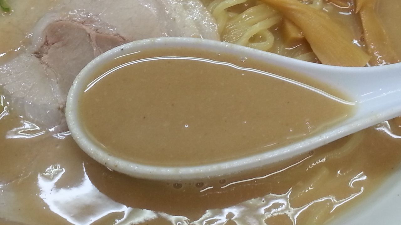 フロートさせたトッピングがネギだけだから、見た目はいまひとつ殺風景。
