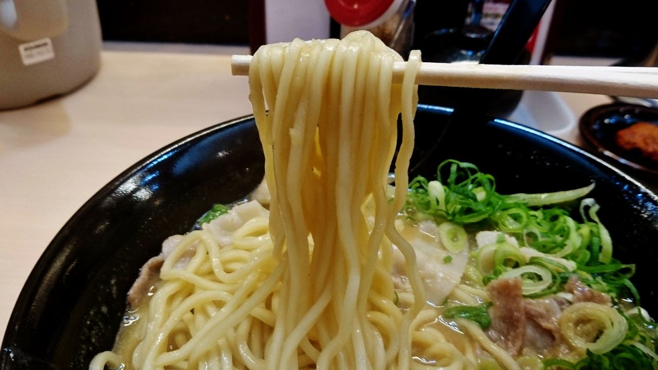 スープは、生姜がふわっと香る白味噌仕立て。「こってり」がベースとのことだが、粘度はそれより少しゆるい感じ。味がお上品過ぎて天一っぽくないけど、これこそ京都的と言えばそんな雰囲気もある。