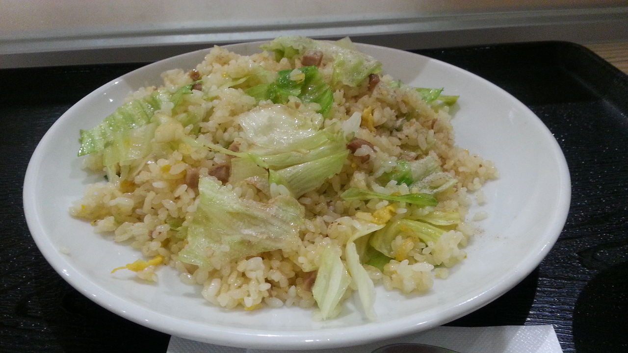 レタスチャーハンは、卵・チャーシュー・ネギ・レタスとシンプルなもの。オイル少な目のパラパラ系で良いのだが、大盛りの割には量が少なくかなりの薄味。これ単品だけだったら、物足りなさ過ぎて食べた感じしないな。