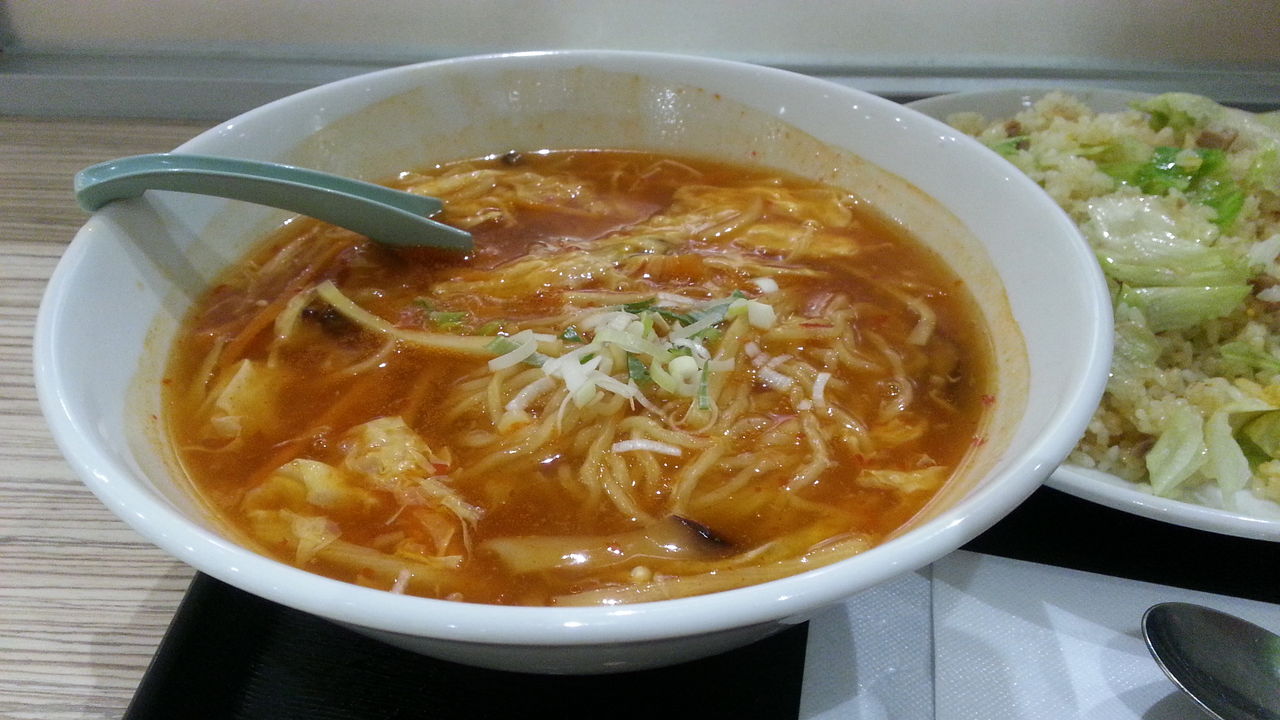 ちなみに酸辣湯の具材は卵・タケノコ・ニンジン・シイタケ・ネギ。肉系が無いのは寂しいよ。