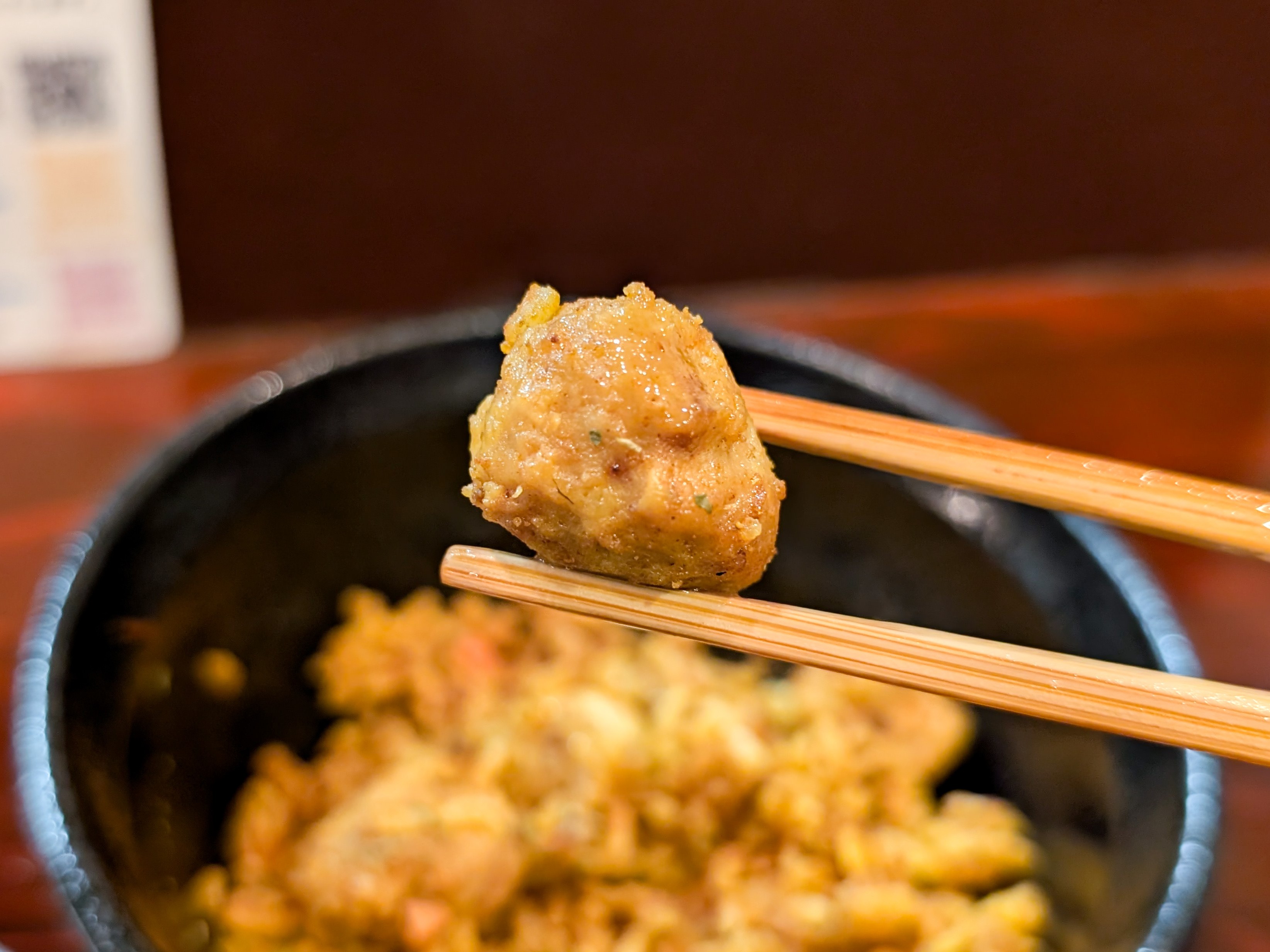 なんだこれ? 謎肉っぽい鶏団子的なナニカ。