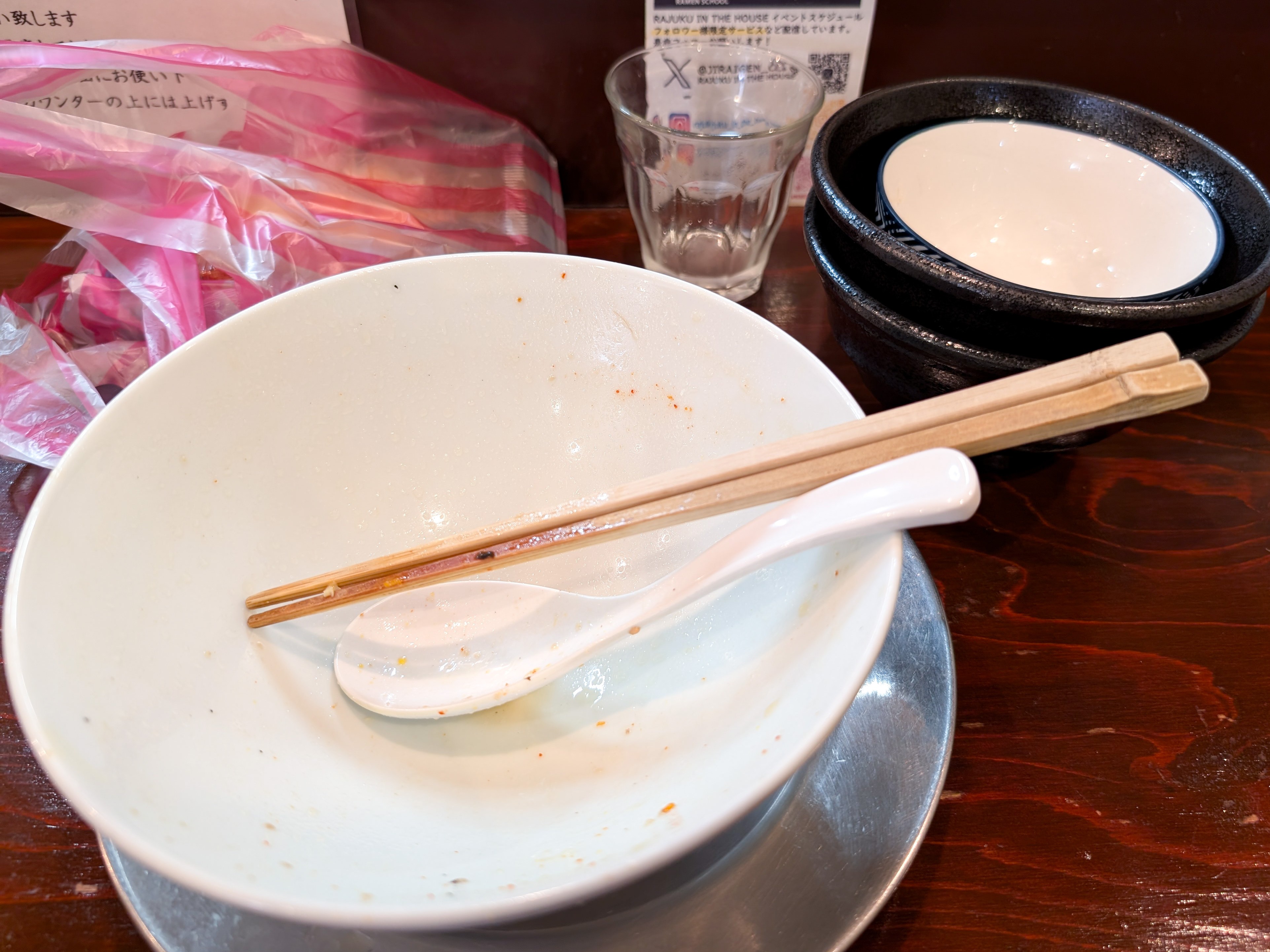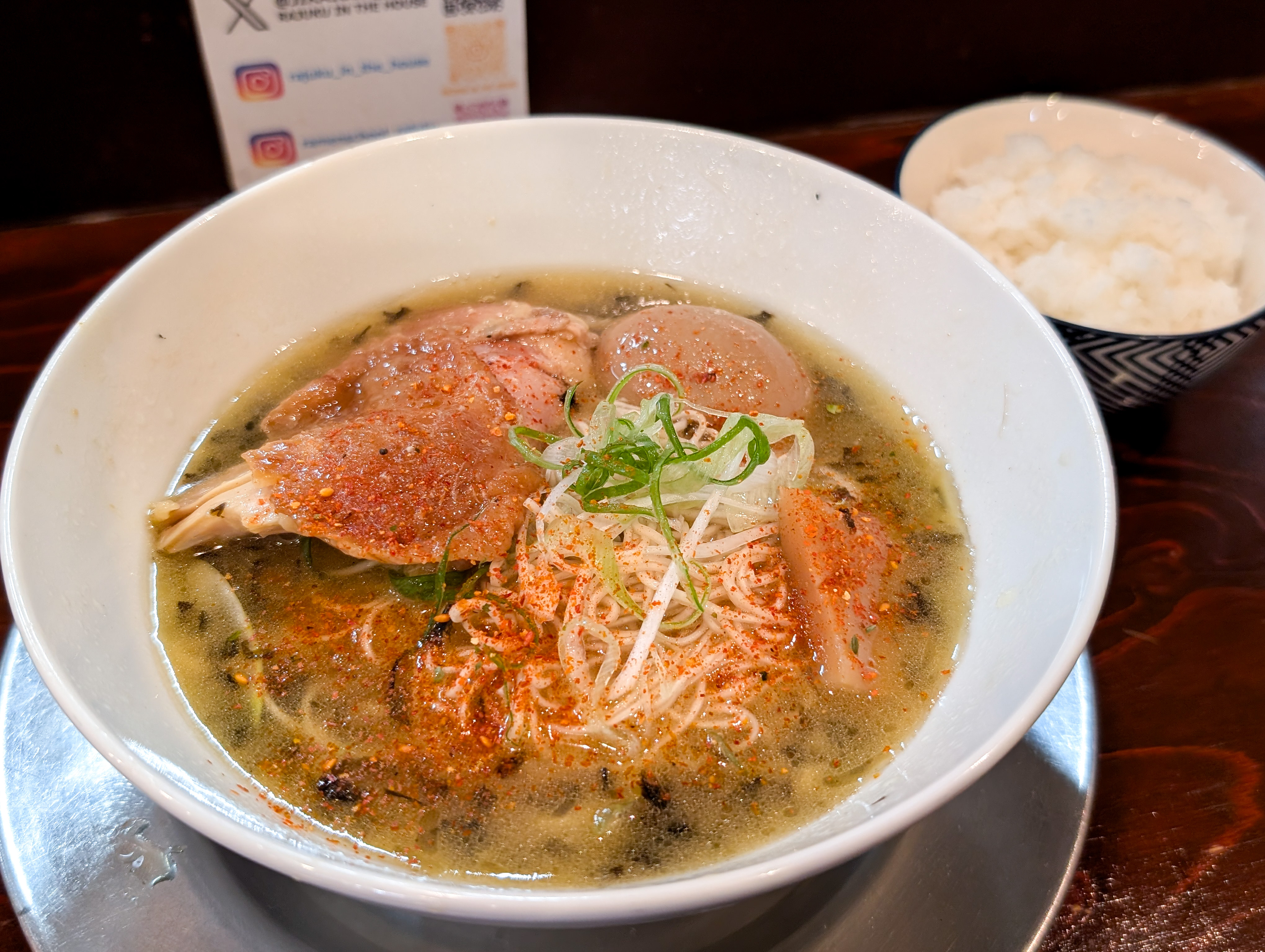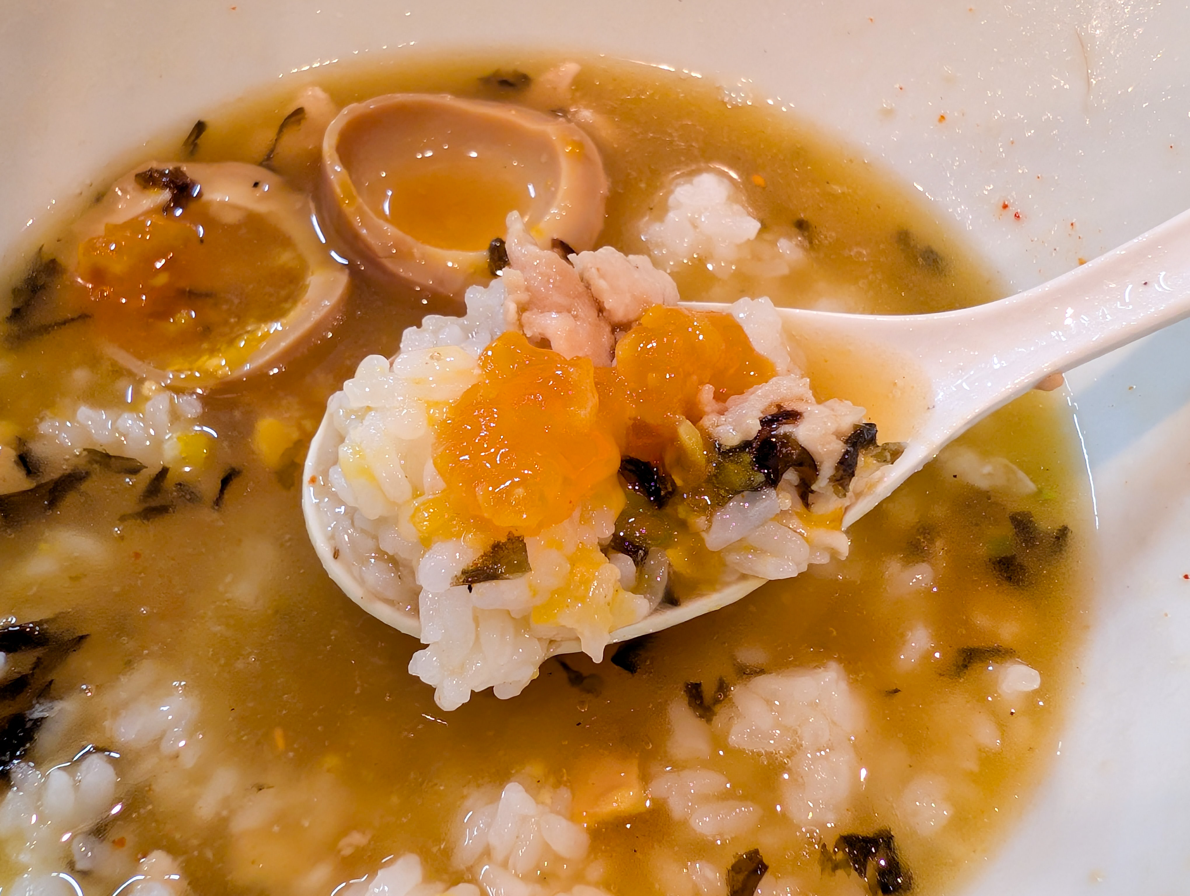 最後の最後にバラ海苔が良い仕事をするんだよね。濃厚豚骨ほどではないけど、鶏白湯の飯ポチャもかなり美味い。