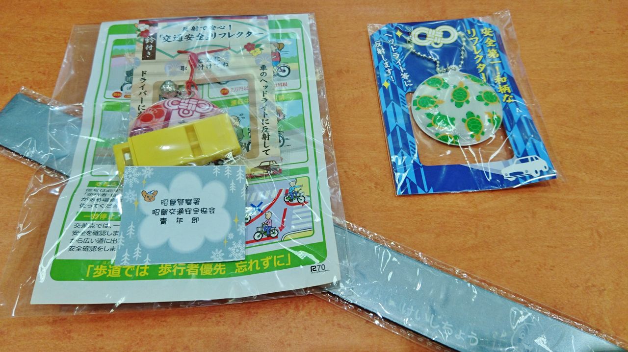 出口で交通安全のグッズを、なかば強引に渡されました💦