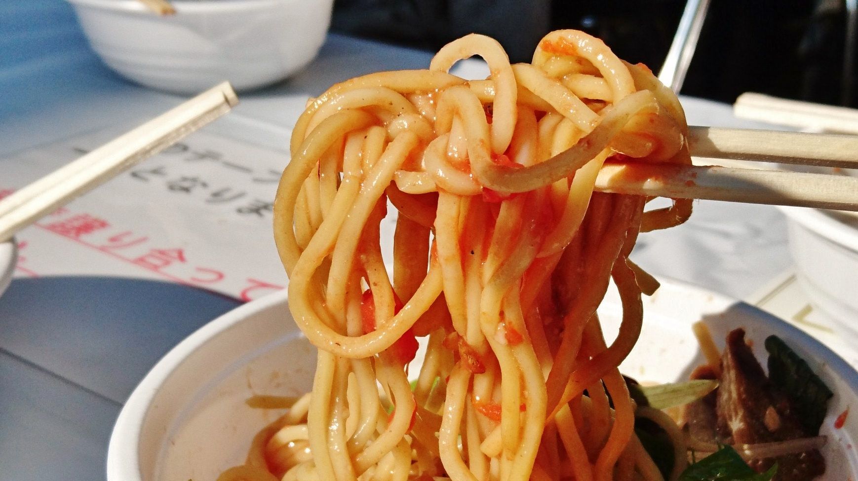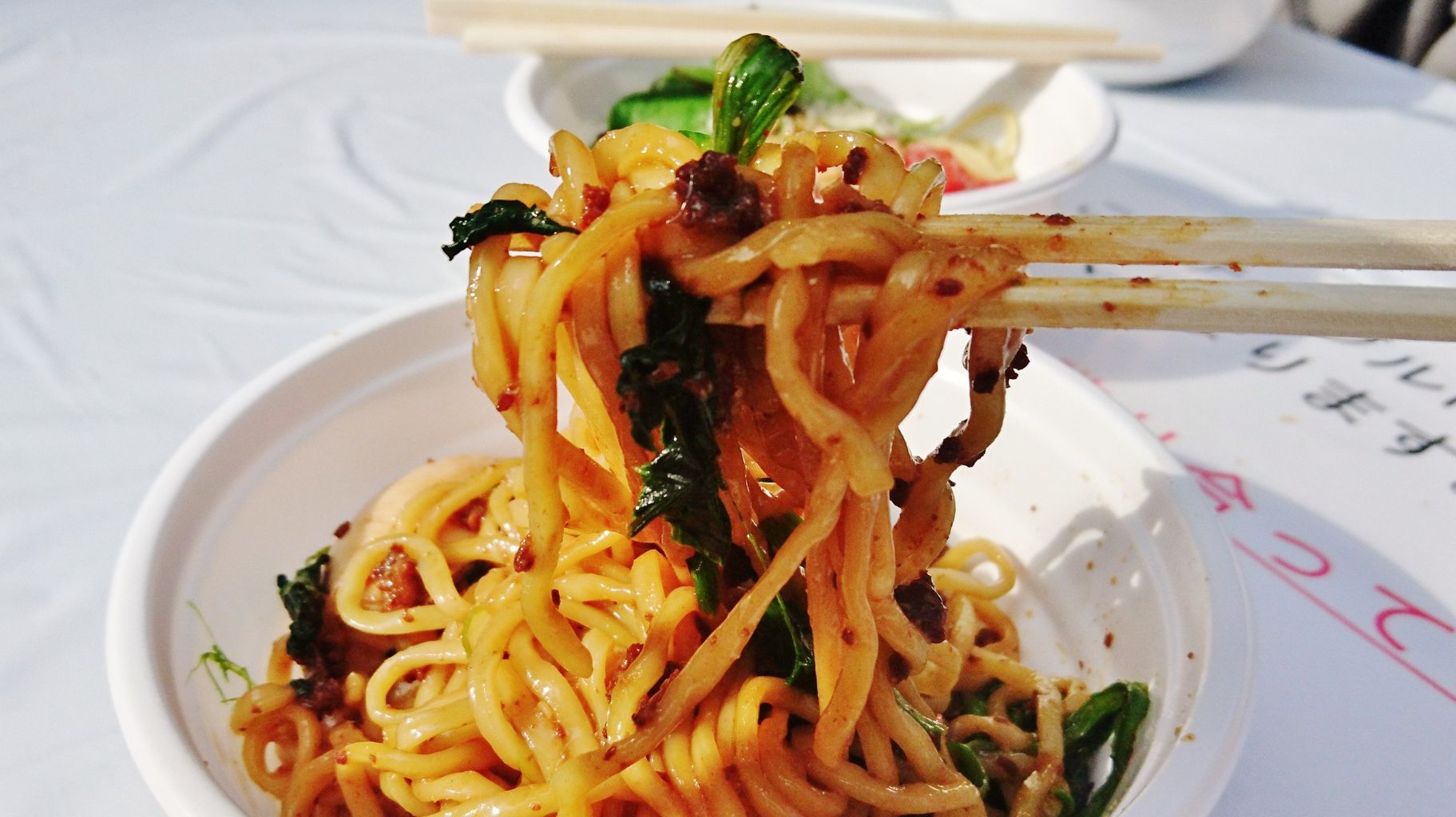 モチモチの太麺に、ねっとり絡みつく甘じょっぱい味噌ダレ。今回から八丁味噌を使ったようで、やんわり大人的な雰囲気をそなえ昨年より格段に深みを増して美味い!