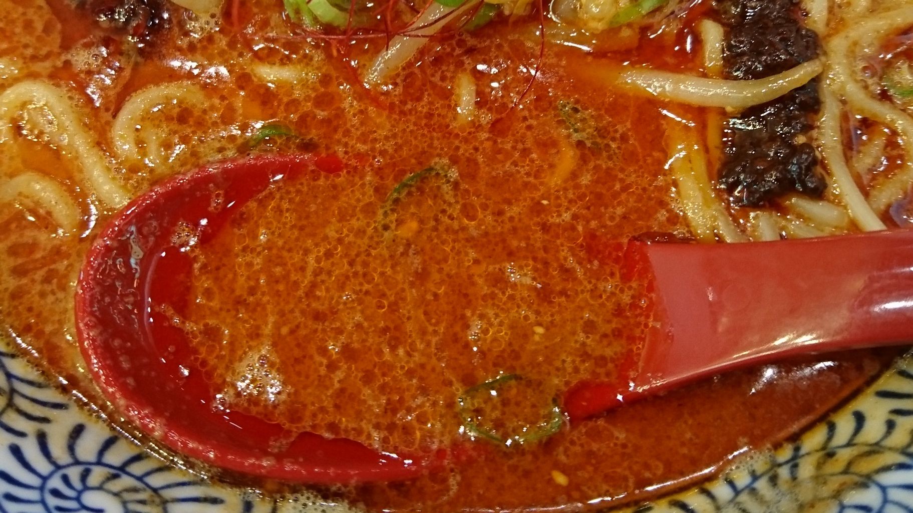 個人的にはこれでも刺激が足りないので、別皿にラー油をレンゲで5匙くらい持ってきたので、一気にドバーっと追いラー油。それでも辛さは足りませんね。(妻は「このスープ無理・・・」と言ってましたけど)