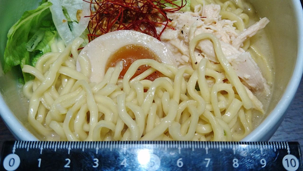 塩と同じく太麺。このチョイスは悪くないと思う👌 麺自体のモチっとした食感はありきたりでも、このたっぷり添えられたレタスと一緒に口に入れることで、他所では余り感じることない食べ心地で面白い。