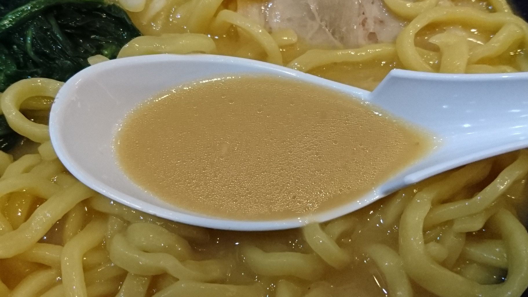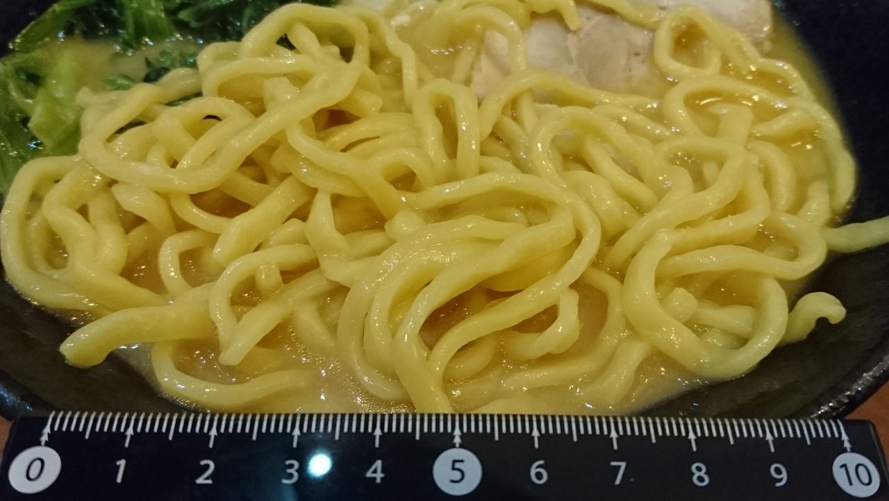 麺は、4×2mmくらいの多加水ややちぢれタイプ。表面ツルッツルで短め、やっぱ家系を意識してんのかな。麺自体に風味は感じられないけど、プリっとしたちょうど良い茹で加減で好きなやつ。