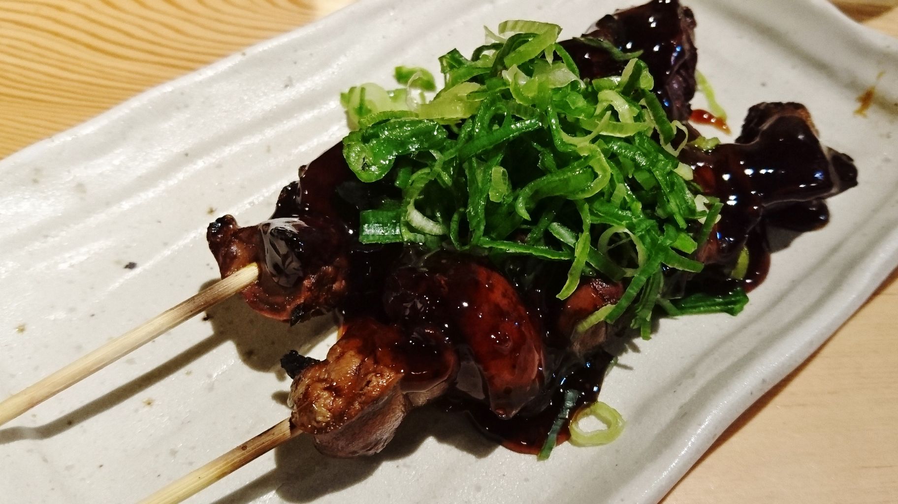 レバーのタレ焼きに柚子七味がかかっているんだろうけど、タレが強過ぎていまひとつ。レバー自体はいいね。