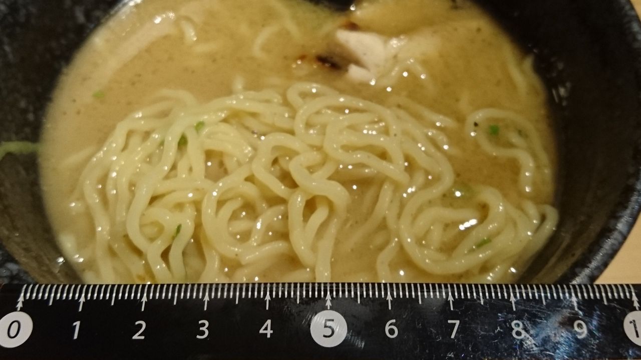 何気にライトな豚骨スープ。魚介の風味は、やはり干節系の魚粉頼みだったようです。
