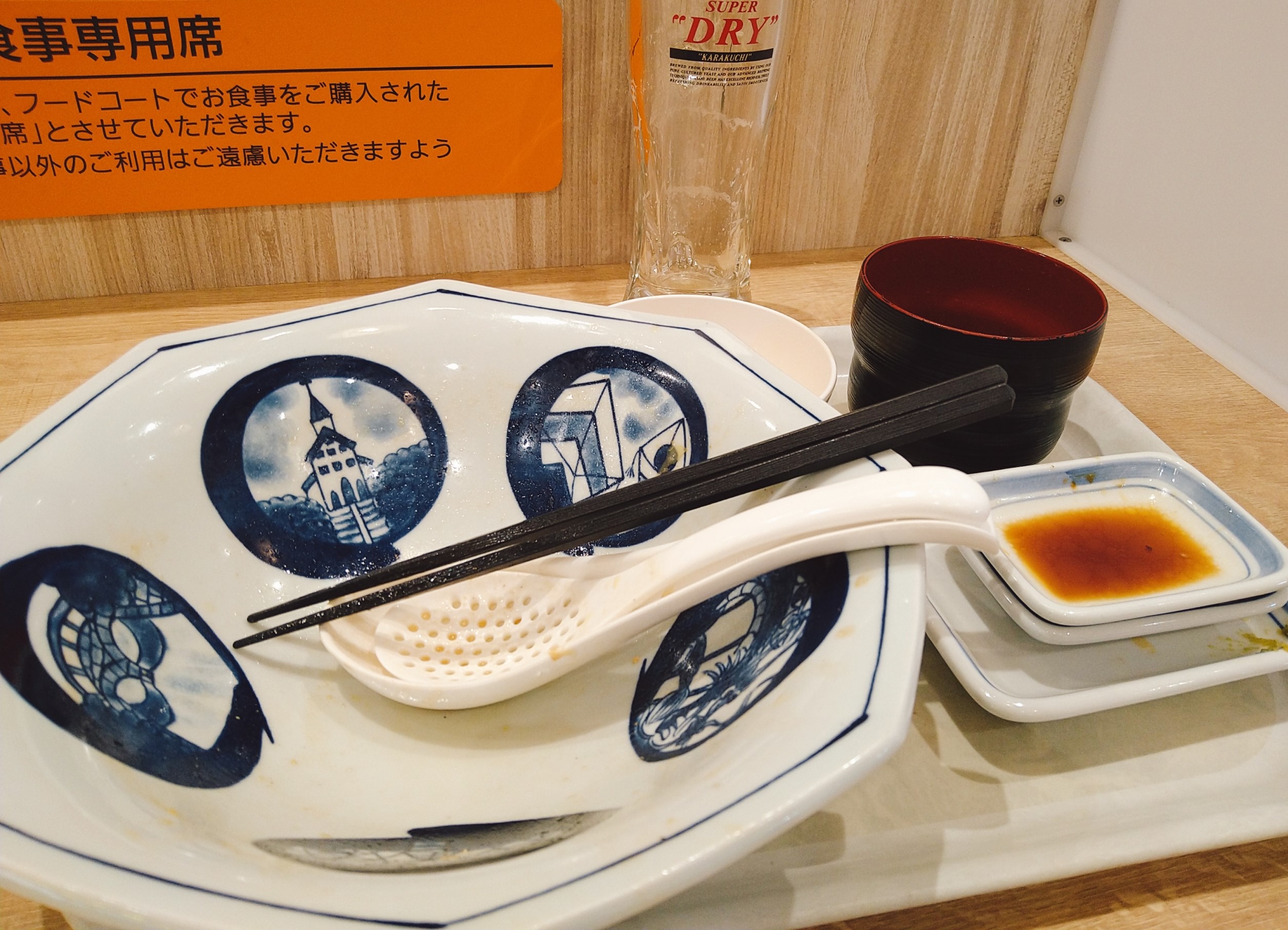 14:30現着でフードコート全体の客入りは3割くらいだろうか。カウンター席からコンセントが撤去されて随分と経つが、仕事や勉強で占領している輩もいなくサクッと座ることが出来た。
