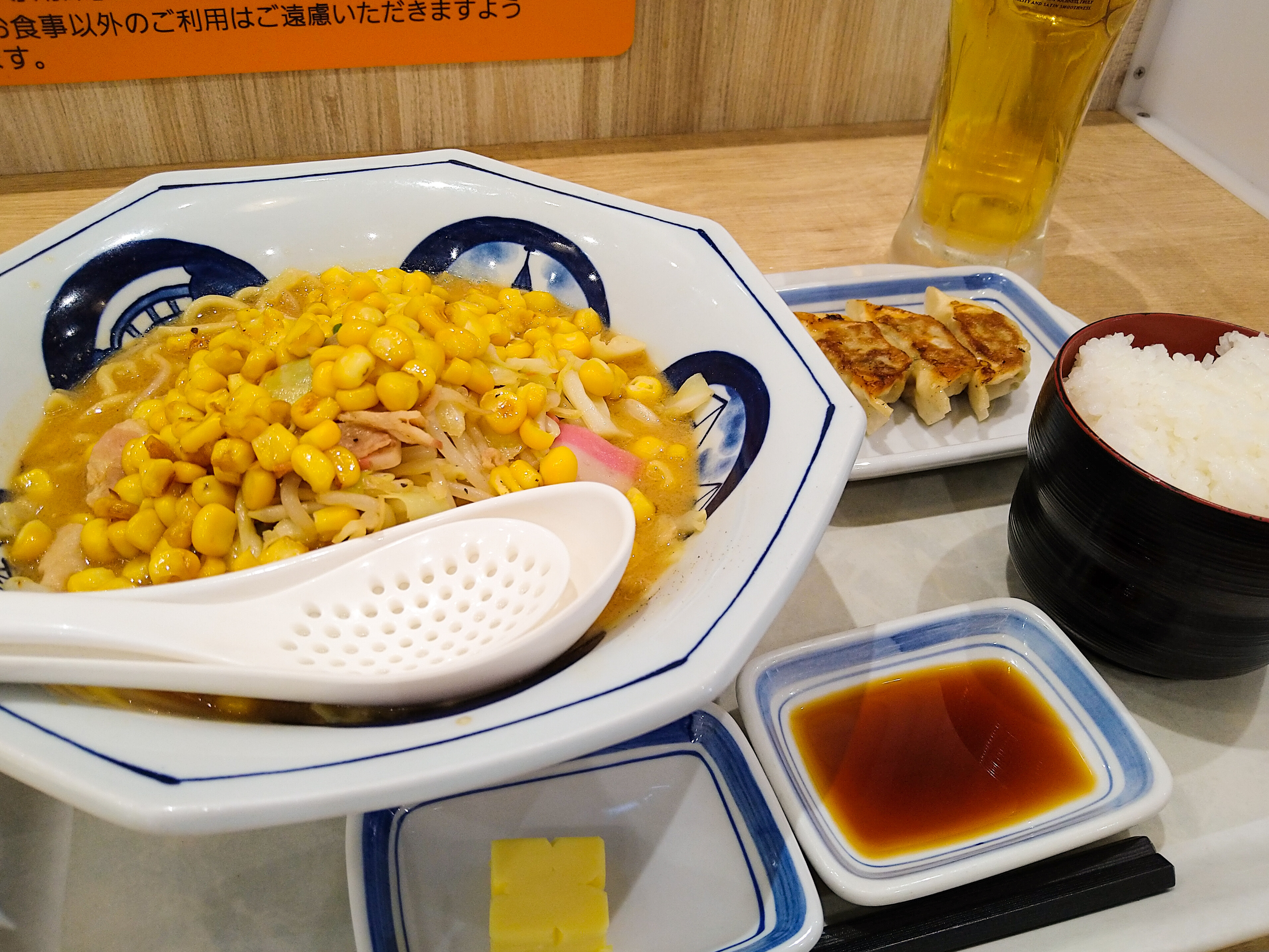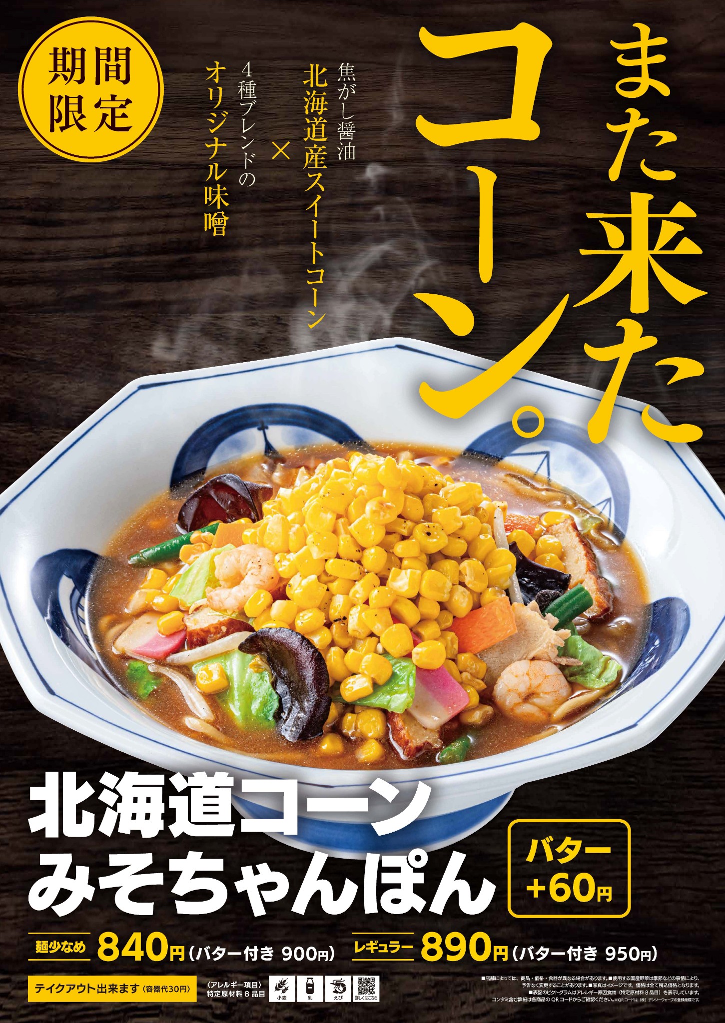 コチラが「北海道コーンみそちゃんぽん」他。なるほどのどっさりコーン!ちゃんぽんらしからぬ見た目はインパクトがあってなかなか素敵。