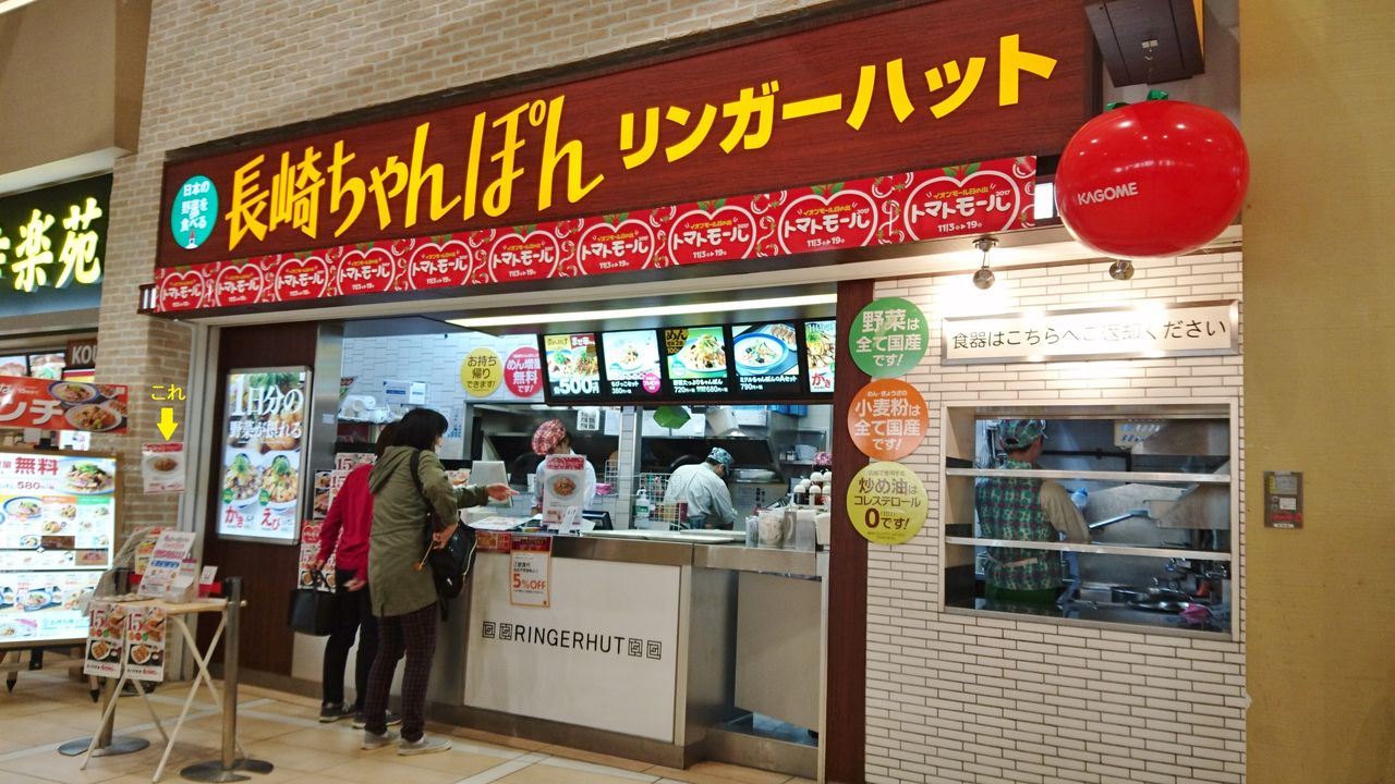 今日の昼ごはんは、日の出イオンのフードコートにある[リンガーハット]へ。
