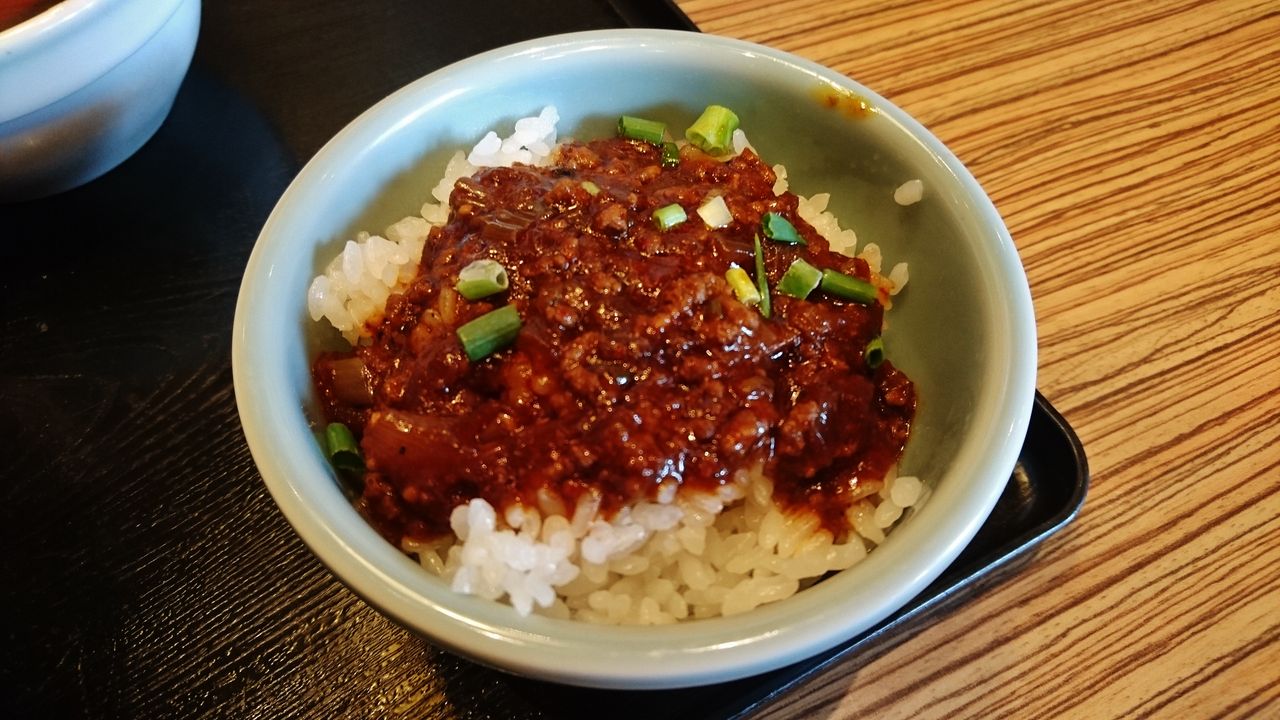 うどんとは逆に、特筆すべきはこの玉葱ライス!細かく微塵切りにした玉葱を麺つゆか出汁醤油的なものに浅浸け(和えただけかも)し鰹節と混ぜたものが、これでもかってくらいたっぷり乗せられています。ホントにこれでもかってくらいネ!