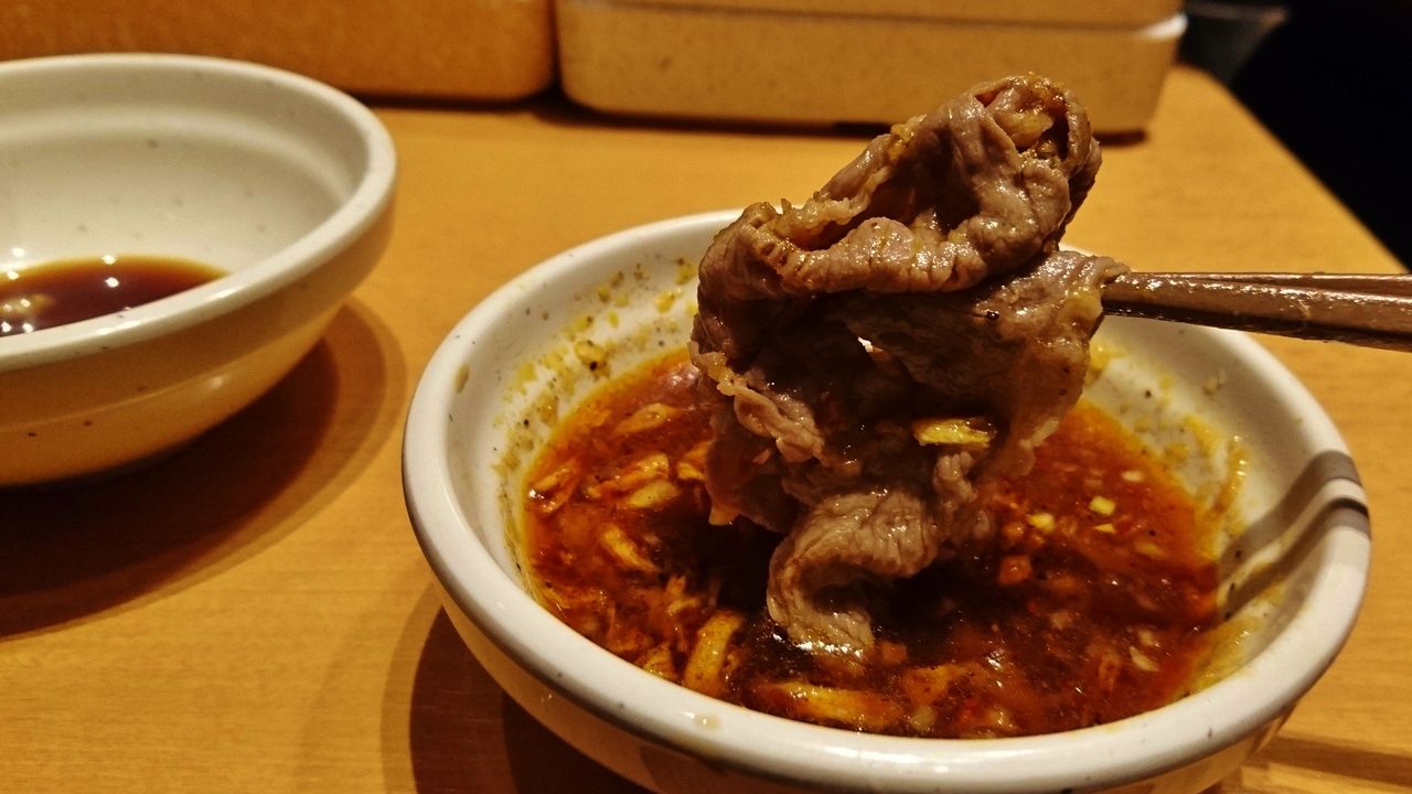 さっきも書きましたが、オーソドックスなポン酢&もみじおろしが一番美味しい。そしてこれが一番量が喰えます。ちゃんと数えてはいないけど、ラム肉だけでも14皿くらい食べたかなぁ?もう許してやったらど~や?