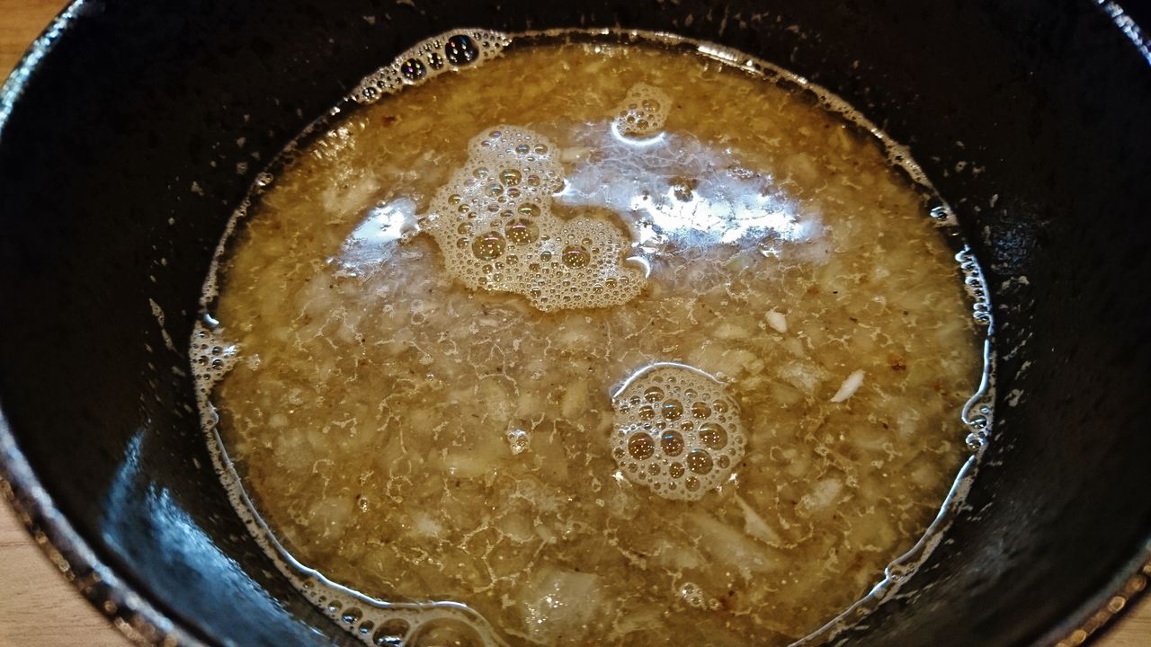 麺は、全粒粉の入った太麺。ギュッと締まったブルンブルンのゴムゴム的なやつで、個人的には超ドストライク!