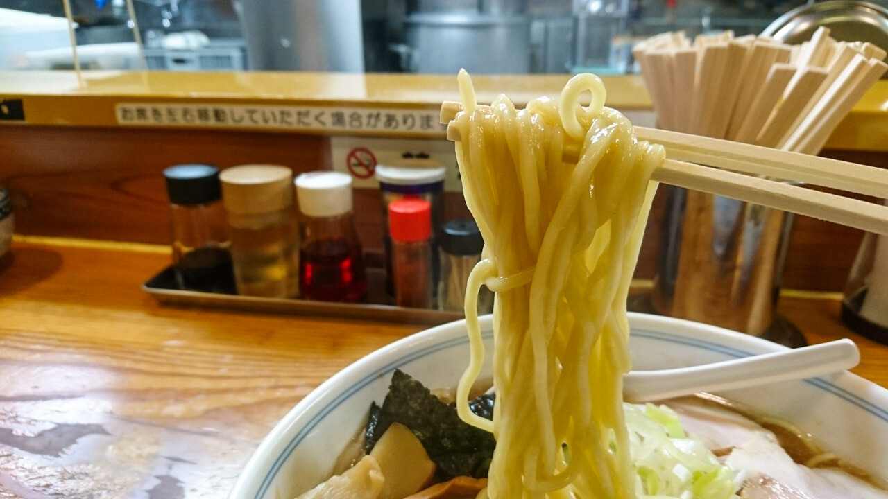 麺肌チュルチュルで啜りやすく、スープとのマッチングも良好!