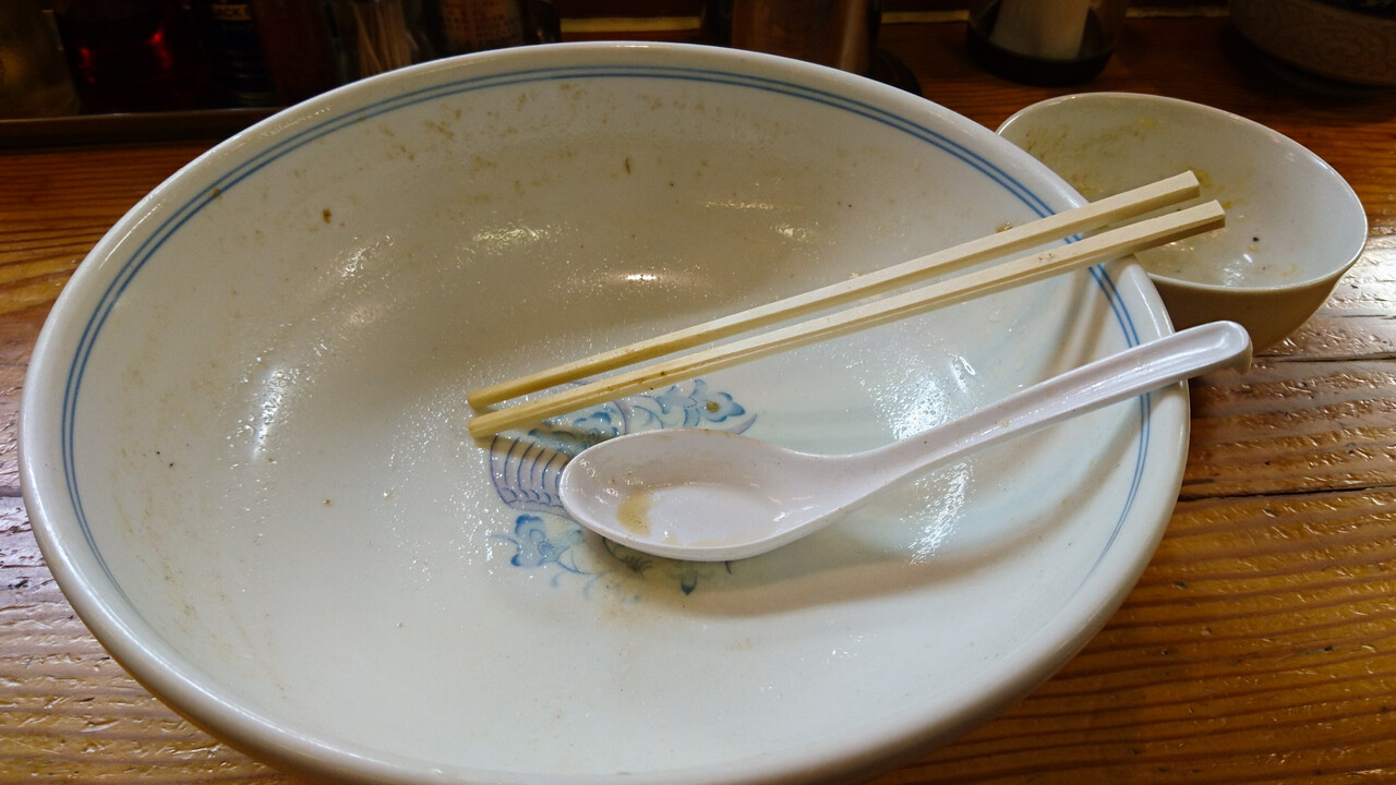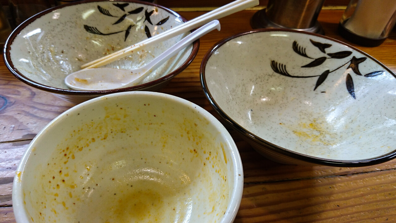 チャーシュー増しはたぶん2枚プラスと思われるが、大小5枚くらい入っていたかな。全体的には美味しいんだけど、今回のは脂身に嫌なしつこさを感じる・・・