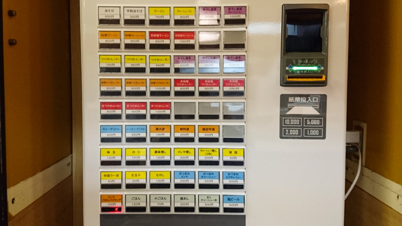 券売機に大きな変更は無さそう。と思いきや、もやしが無くなくなっていました。