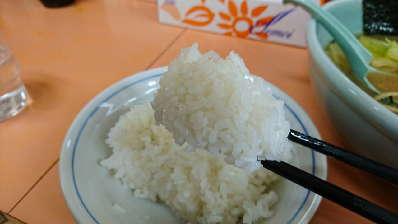 目の前にあった電気釜で炊いたのだろうか?それとも保温だけのための電気釜か?いずれにしても、ラーメンに合わすライスとしては、やや水っぽいと言うか粒がフンニャリしていました。麺もそうですが、米もプリッとしたのが好きなんです。
