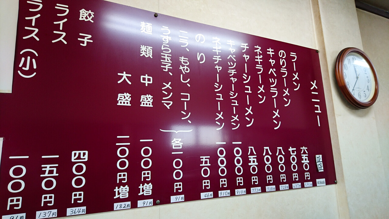 写真左側の見切れた部分には、「辛子味噌」系のラーメン・「ネギチャーシュー丼」・「味噌キャベツ丼」の表示が。