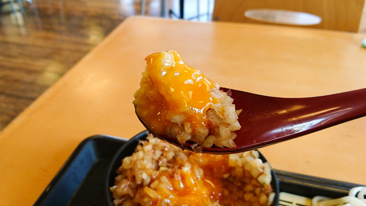 ただでさえ玉葱の甘みと醤油の塩気のバランスが絶妙なのに、さらに卵黄がとろ~りと・・・これ美味いに決まっています。こっちの方を滝山名物にした方がイイのでは?