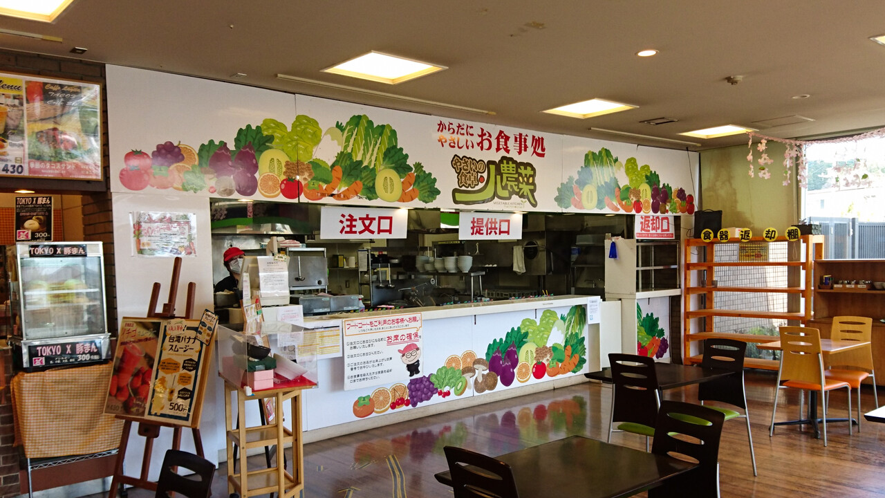 今日の昼ごはんは、同施設のフードコートにある[やさいの食卓 八農菜]へ。