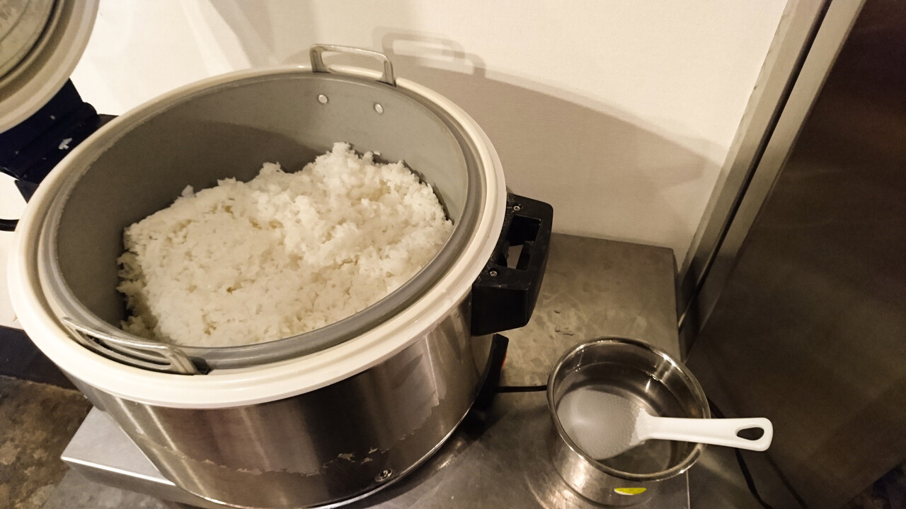 ちなみにこれが無料の追い飯。セルフでどんぶりに直入れするらしいけど、超山盛り入れちゃってもイイのだろうか?