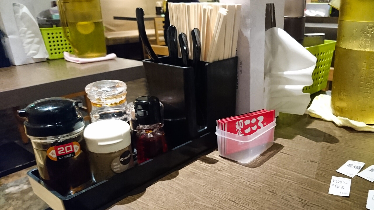 残念なことに、既存店の様な無料薬味コーナーは設置されておりませんので悪しからず。